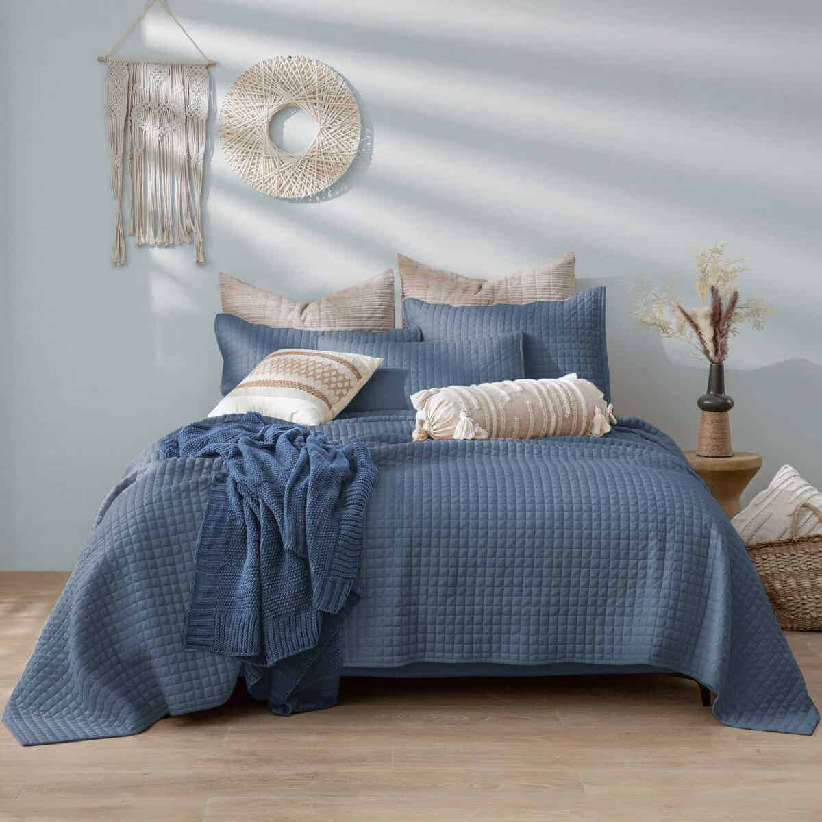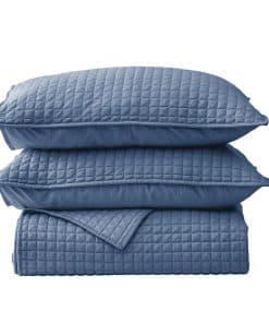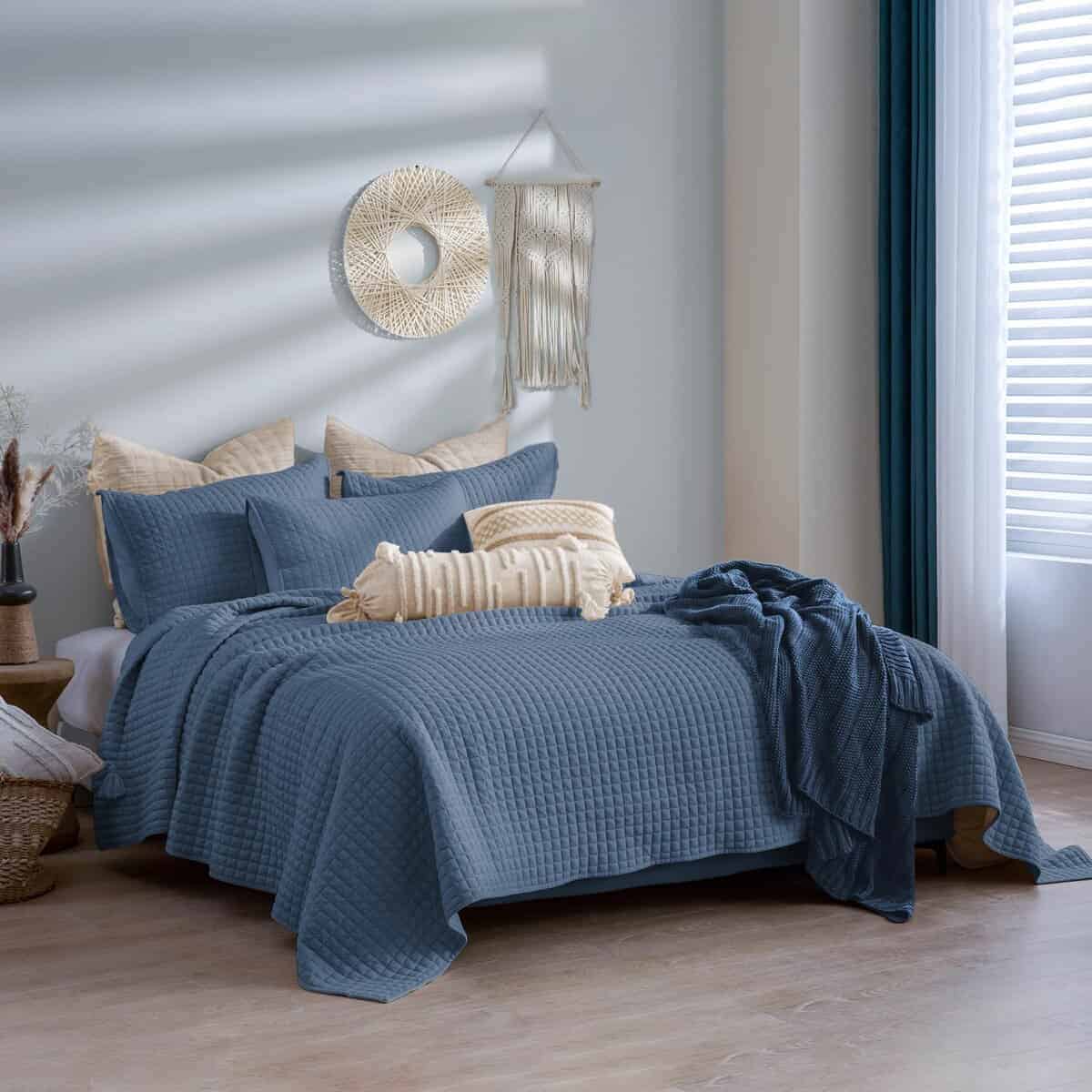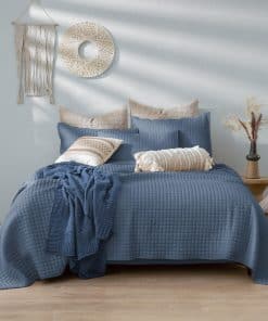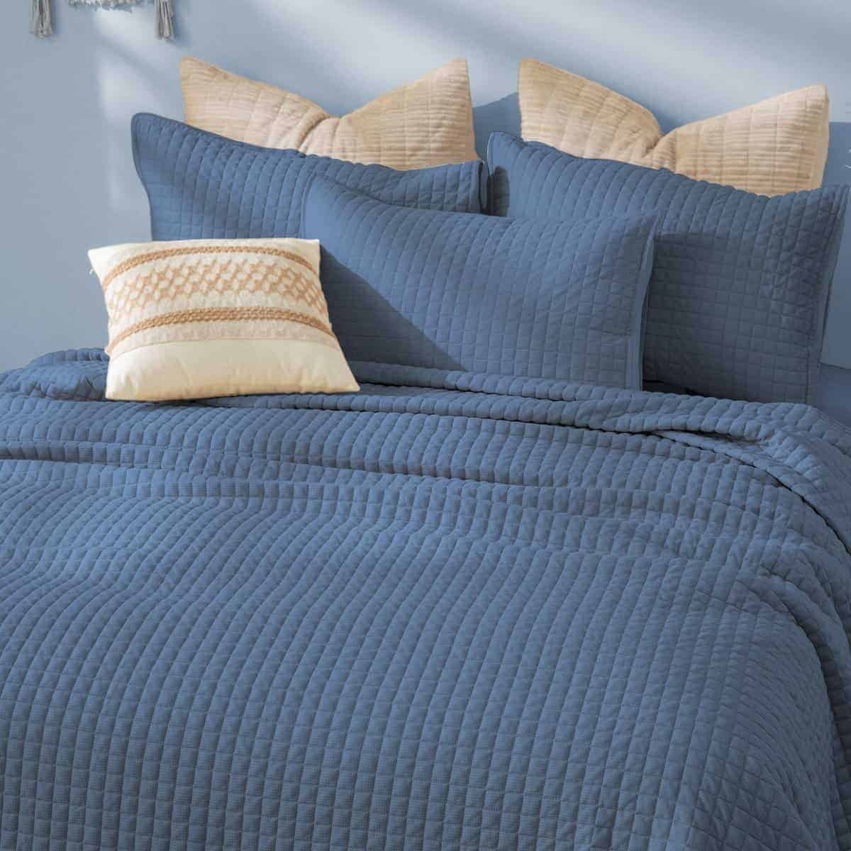 Maravilloso Juego de Edredón de Gofre Azul Denim con Fundas