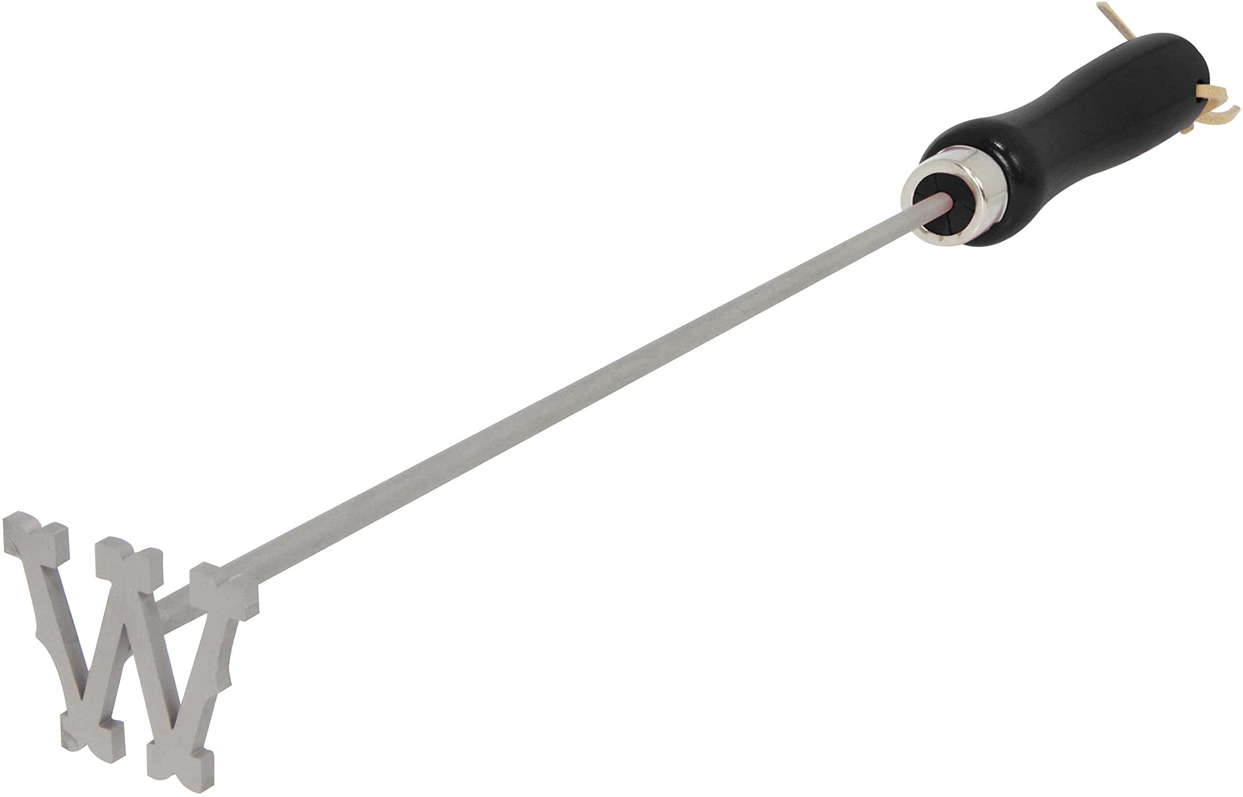 Nuestro Hierro de Marcar Western W es ideal para darle un toque western a tu BBQ en el patio trasero o evento. La fuente western deja una marca western distintiva en todo lo que pretendas marcar con él, ya sea filetes, panes, hamburguesas, madera o cuero. No solo el asador disfrutará al marcar su filete, hamburguesas o panes, este hierro de marcar también funciona genial en madera y cuero. Si estás buscando algo un poco más personalizado, hay opciones de Hierro de Marcar Personalizado. La letra en el hierro es de 11/4″ de alto por 11/2″ de ancho. Se calienta fácilmente en una llama abierta, carbón o idealmente. Hecho de acero inoxidable para que no se oxide. Se limpia fácilmente con jabón y agua. Funciona genial en madera y cuero también. Orgullosamente hecho en EE. UU. Marcaremos la parte superior de la caja con el hierro de marcar y lo envolveremos dentro de un pañuelo western.