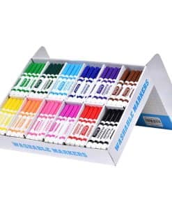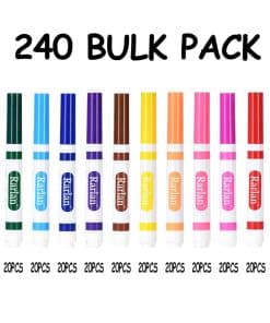 240 count washable markers come in a box, contains 20 each of 12 different colors, classroom bulk pack. 12 colores en negro, rojo, naranja, rosa, amarillo, verde, azul, rojo rosa, azul cielo, verde oscuro, morado y marrón. Marcadores de línea ancha con puntas cónicas que permiten a los niños colorear con el lado o dibujar con línea fina. Excelente para proyectos escolares, tareas y manualidades, perfecto para maestros como material escolar. Caja resistente para un fácil almacenamiento, perfecta para uso en el aula, ideal para niños de 3 años en adelante.