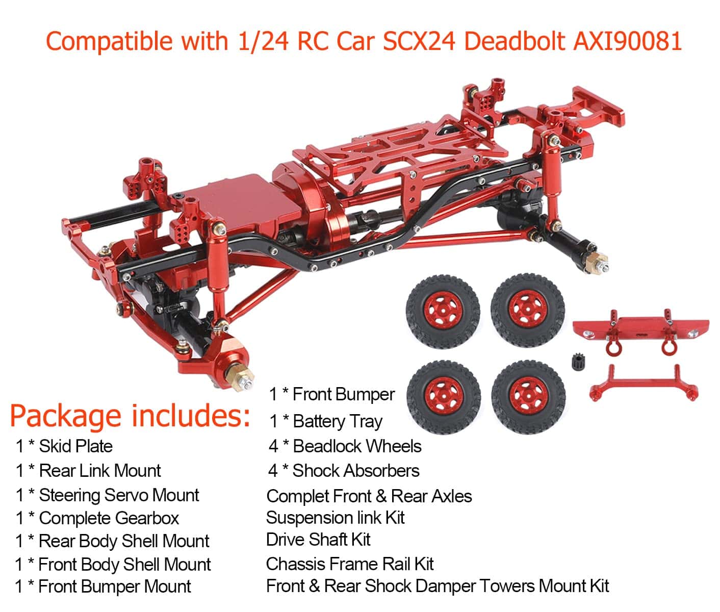 Marco de chasis de metal para RC ensamblado diseñado para adaptarse al coche RC Crawler Axial SCX24 90081 Deadbolt en escala 1/24. Este paquete incluye un marco de chasis de alta calidad fabricado en aleación de aluminio, con todos los accesorios necesarios tal y como se muestra en la imagen. El material utilizado en su fabricación es aluminio mecanizado y anodizado, lo que le proporciona una apariencia agradable y una actualización ligera que mejora el rendimiento del coche en términos de manejo y durabilidad. Con materiales de alta calidad y excelente artesanía, este marco de chasis es ligero y duradero, lo que permite que el coche se destaque en la carrera con una forma hermosa. Además, su diseño ayuda a extender la vida útil del coche. Si tiene alguna pregunta sobre este producto, no dude en ponerse en contacto con nosotros, ya que ofrecemos un servicio al cliente profesional para resolver cualquier problema que pueda surgir.