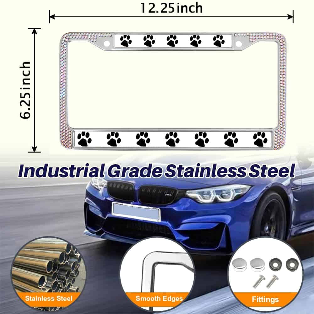 ¡Nuestros Marcos de Placas de Licencia con Diamantes de Imitación Brillantes Le Dan a Su Vehículo una Apariencia Impresionante y Protegen Sus Placas! Acero Inoxidable de Alta Calidad Hechos de acero inoxidable 304, estos marcos de placas de licencia para automóviles no solo son ligeros, sin bordes afilados, sino que también son altamente resistentes a la corrosión, el óxido y los arañazos. Más de 220 piezas de FABULOSOS DIAMANTES DE IMITACIÓN Con más de 1200 diamantes de imitación cortados con precisión que están firmemente fijados en los marcos, ¡hacen que su automóvil llame la atención de todos en la carretera! Puede instalarlo usted mismo en minutos, el juego de tornillos está incluido en el paquete, no se requieren herramientas especiales. 1 x Caja de Regalo 1 x Marco de Placa de Licencia Brillante 2 x Tapa de Tornillo Universal a Juego 2 x Arandelas 2 x Tornillos de Máquina ¡TENGA EN CUENTA! El paquete incluye solo 1 marco de placa de licencia brillante, si desea instalar en las placas de licencia delantera y trasera, ¡agregue 2 al carrito!
