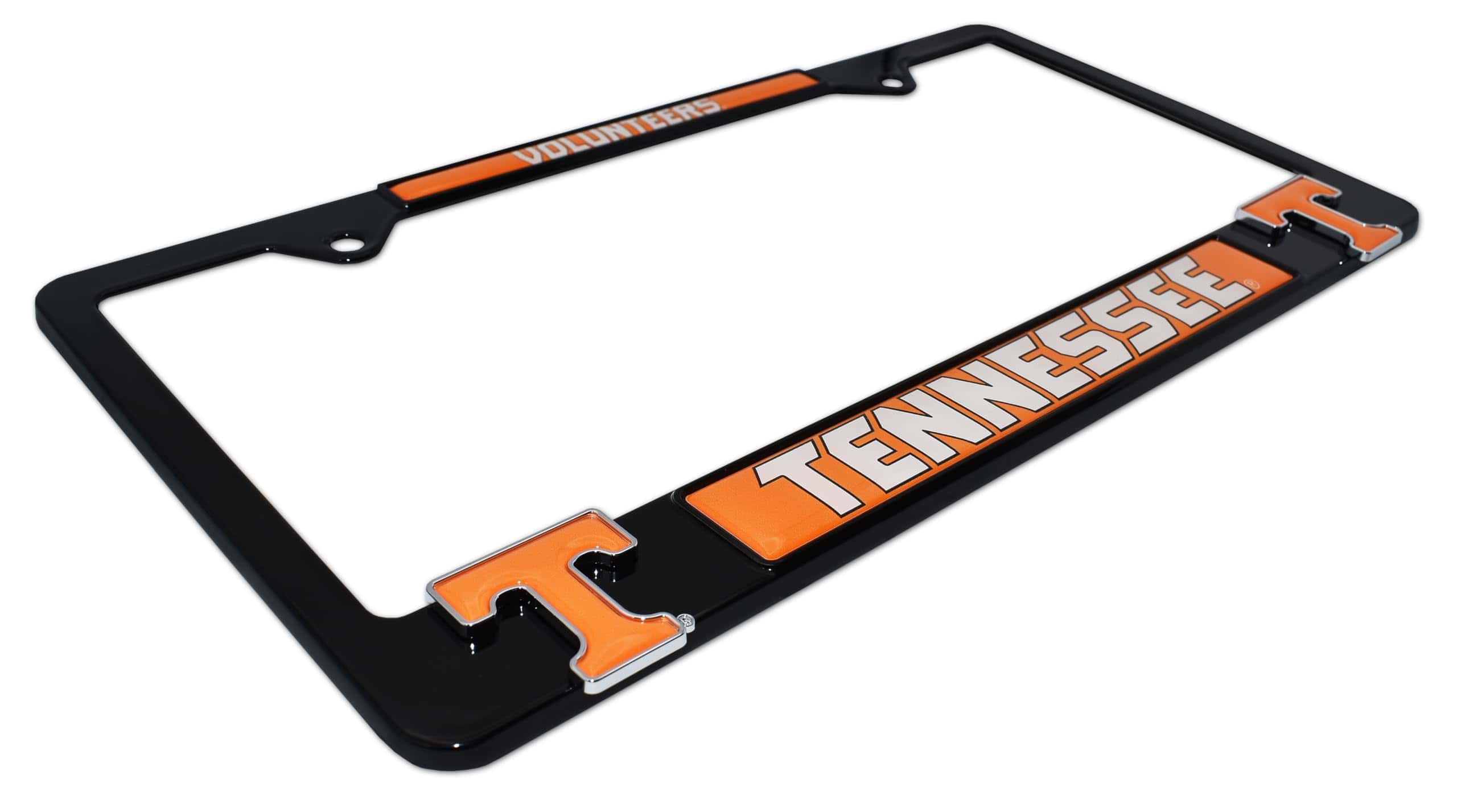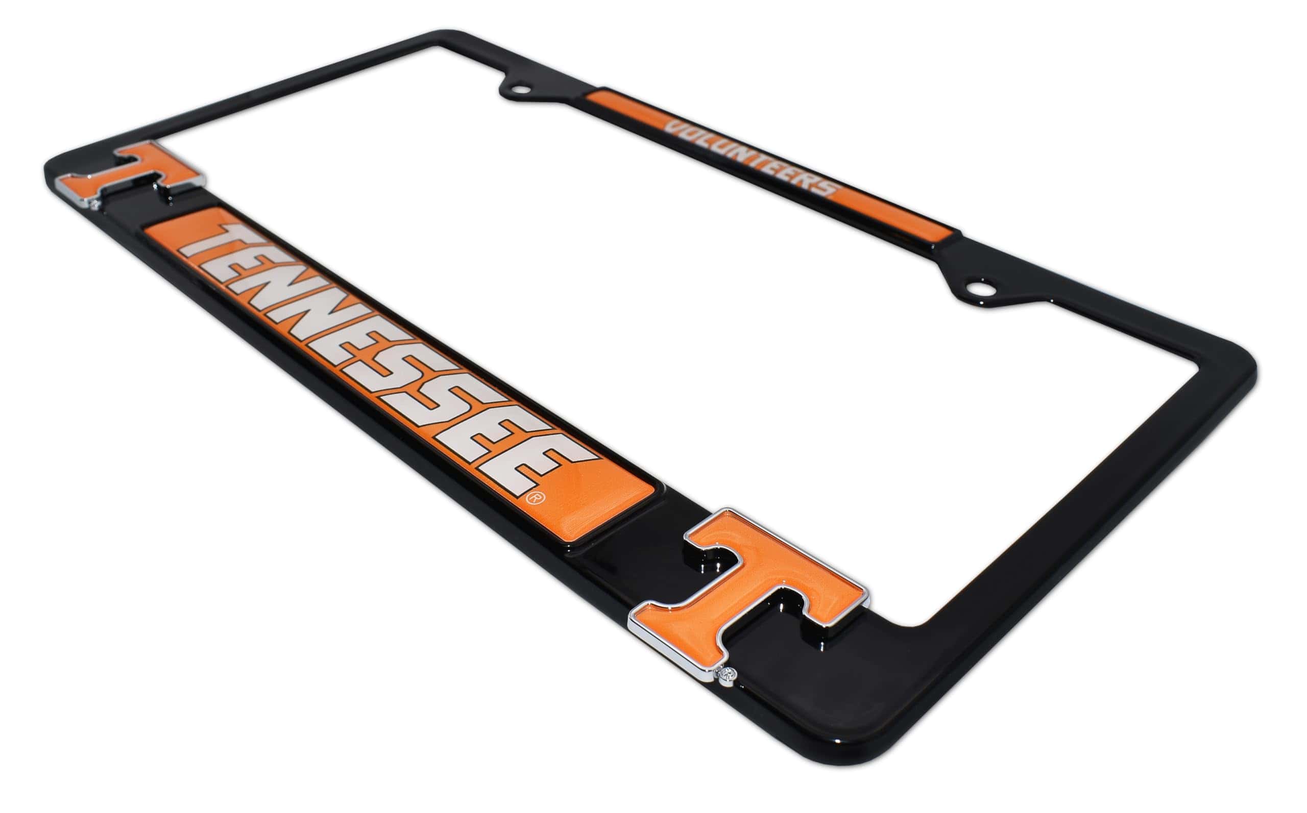 1. Diseño llamativo: Nuevo marco de placa de licencia totalmente metálico de Tennessee Volunteers de 12.25″ x 6.5″ con logotipos 3D cromados únicos con gráficos a todo color.