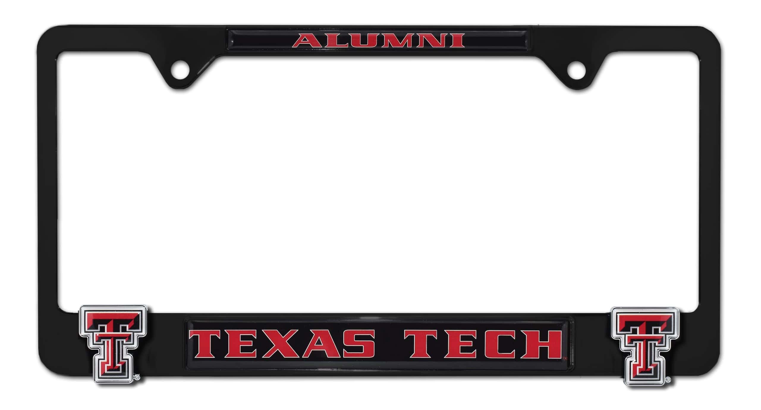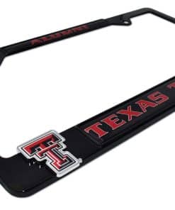 1. Diseño Impactante: Nuevo Marco de Placa de Licencia de Metal para Texas Tech Alumni 12.25″ x 6.5″ con logotipos únicos cromados en 3D con gráficos a todo color.