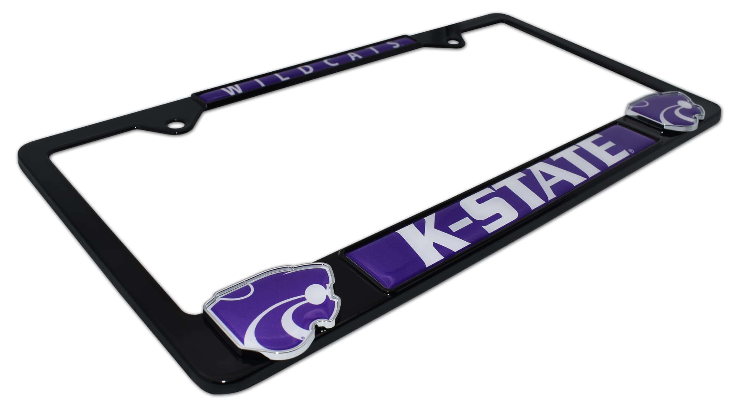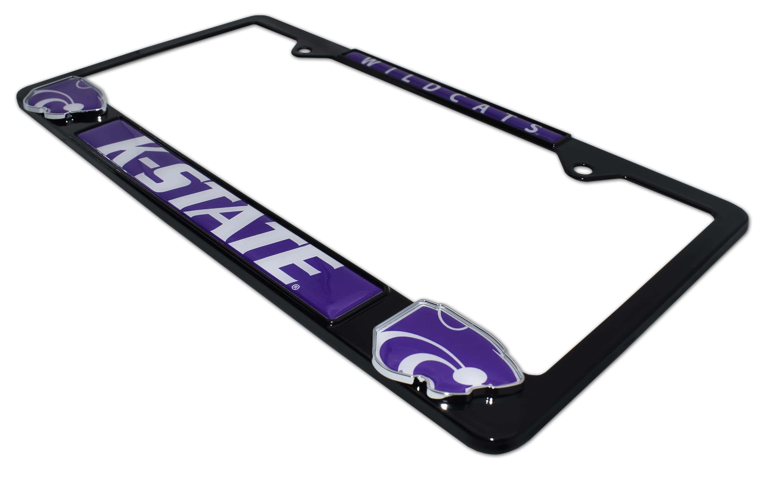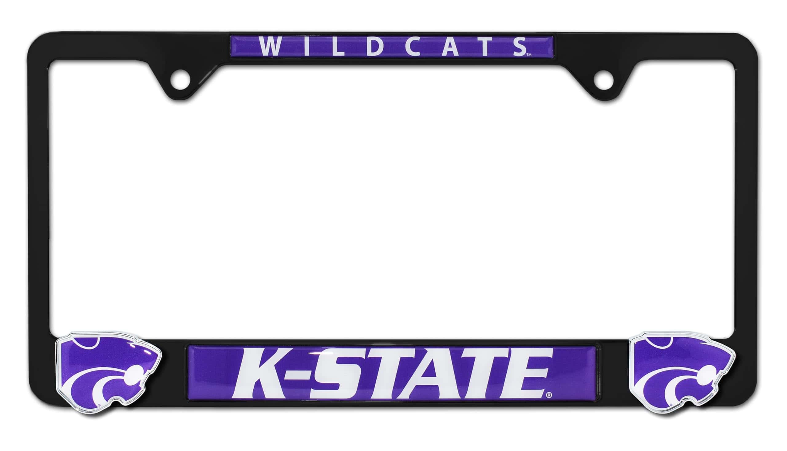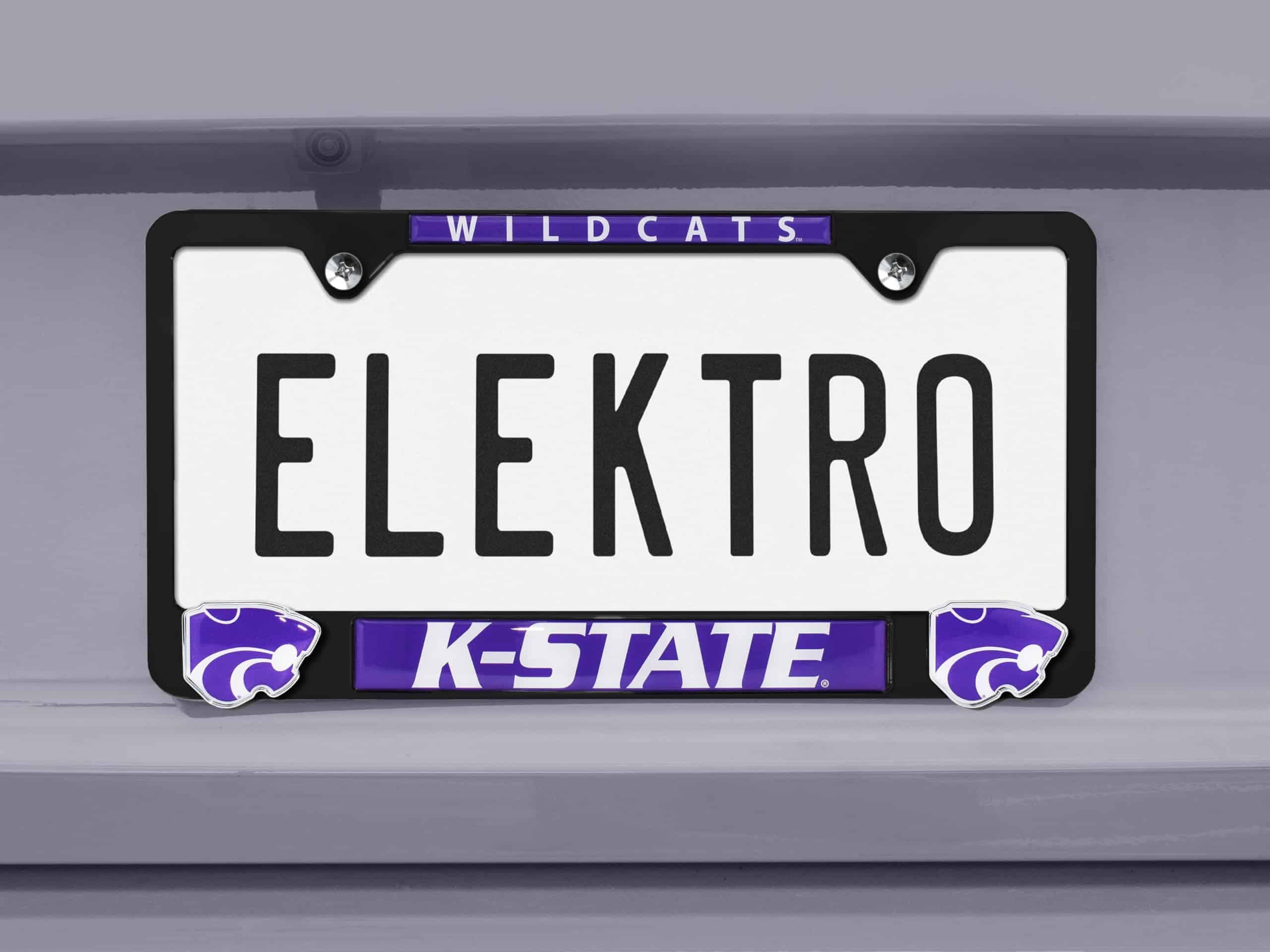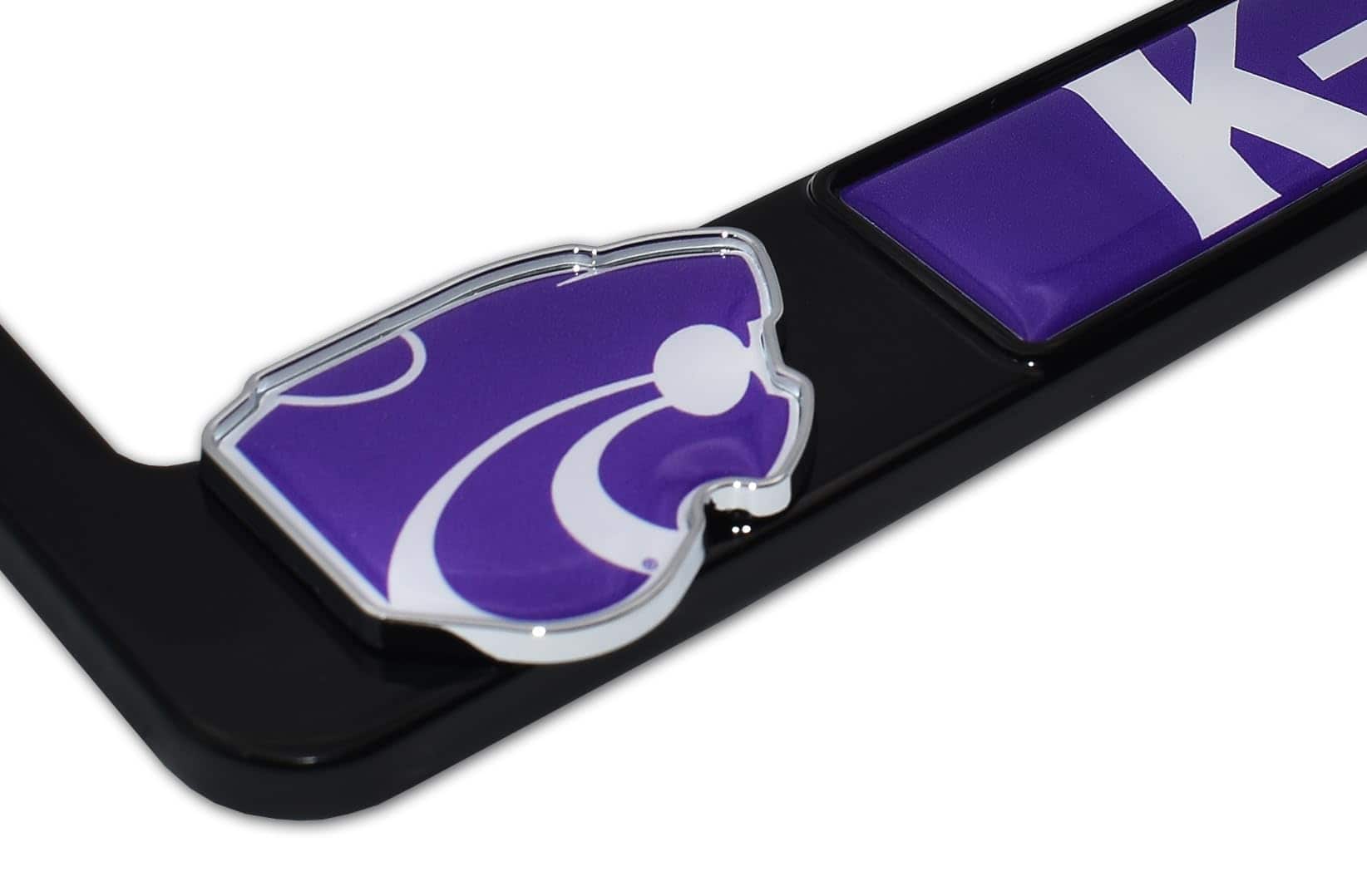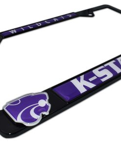 1. Diseño llamativo: Nuevo marco de placa de licencia todo de metal de la Universidad Estatal de Kansas 12.25″ x 6.5″ con logotipos cromados 3D únicos con gráficos a todo color.