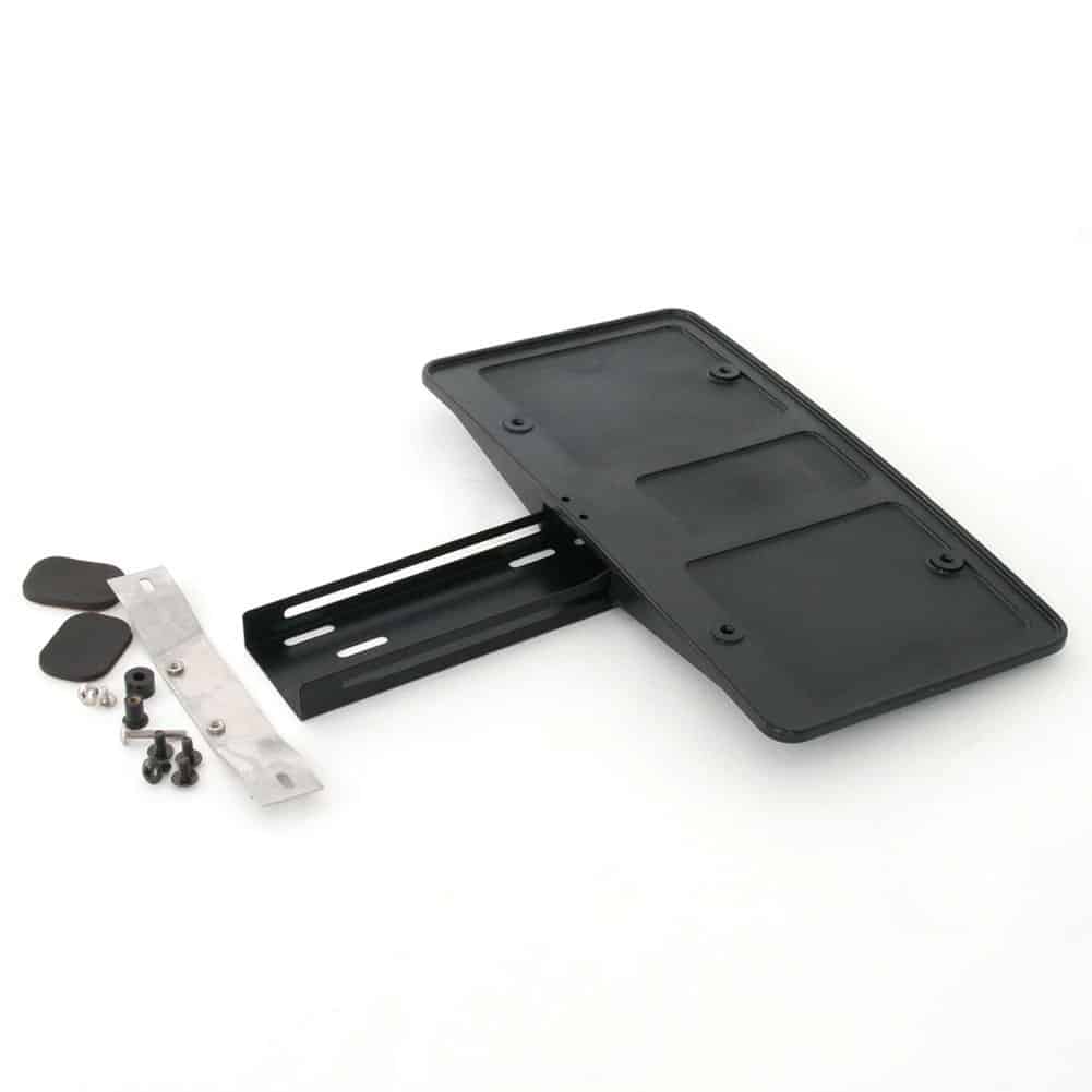 Este marco de placa de matrícula le permite exhibir o almacenar con un simple movimiento de una mano para retraerlo o sacarlo y permitir que se balancee hacia arriba en la posición de exhibición. El sistema puede ser instalado por cualquier persona con habilidades mecánicas razonables y herramientas manuales. El mecanismo del marco de la placa de matrícula se monta debajo del parachoques delantero. Todos los componentes de acero inoxidable o polímero relleno y sujetadores para una operación sin problemas duradera Marco base electrochapado en negro satinado SS para un acabado atractivo y duradero. Totalmente ensamblado con hardware de montaje universal con una instalación sencilla en automóviles de serie o personalizados.