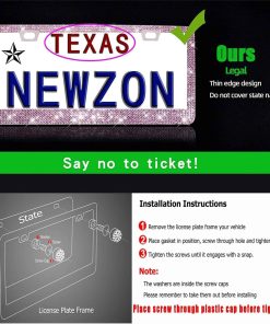 5. Legal en la calle – ¡El Marco de Placa de Matrícula Bedazzled Rosa de Newzon es legal en la calle y no bloquea la marca de registro ni el nombre del estado! Y funciona en todas las placas de matrícula estándar de Canadá y Estados Unidos. ¡Puedes estar seguro de que no te causará problemas al conducir sin miedo a ser detenido por la policía! (Tenga en cuenta que si se encuentra en CO, DE, FL, GA, ID, IN, IA, KY, LA, ME, MN, MS, NH, NM, NY, NC, OR, OH, RI, SC, SD, TN, VT, WI Estos estados, seleccione el marco de placa de matrícula de diamantes de 4 orificios de Newzon en la tienda).