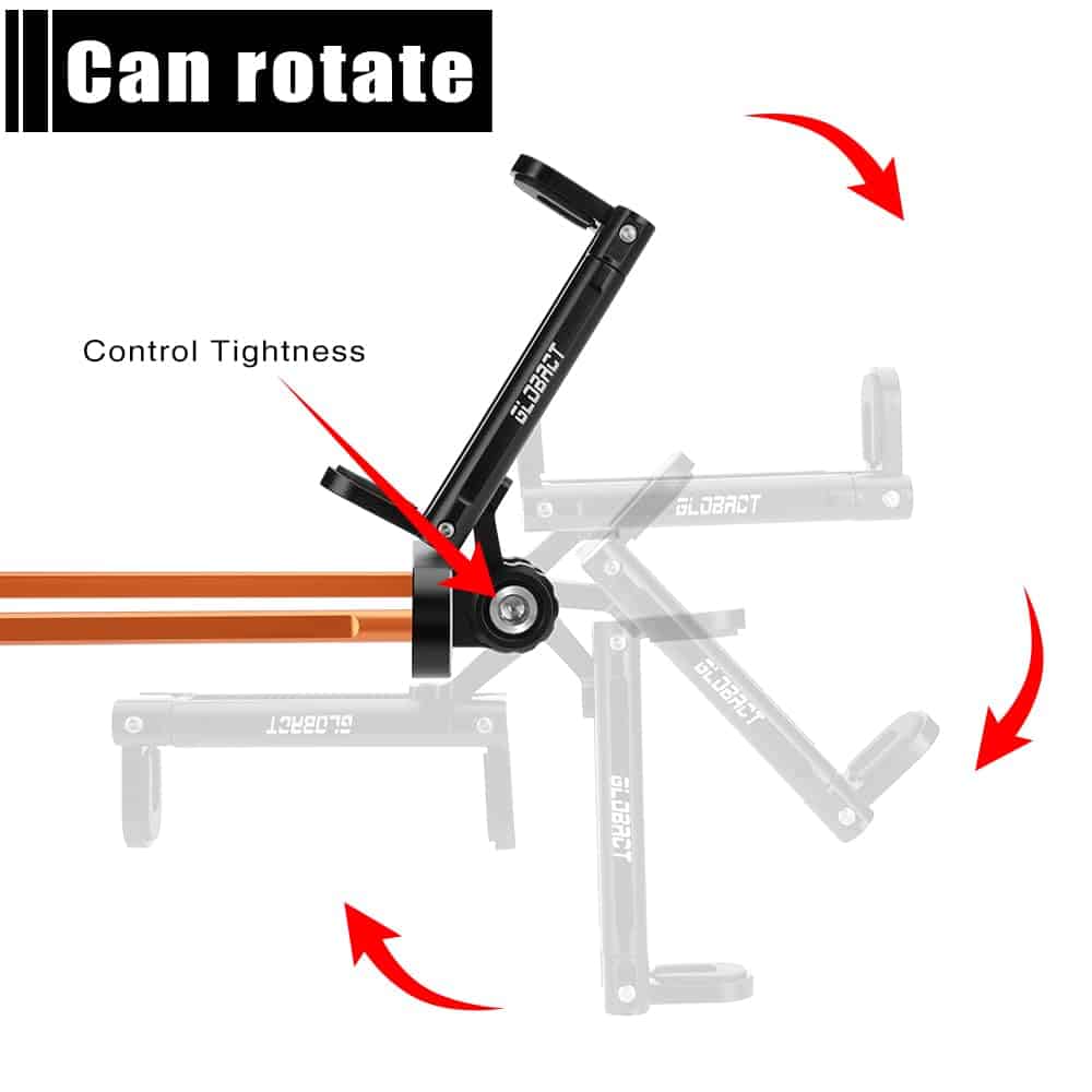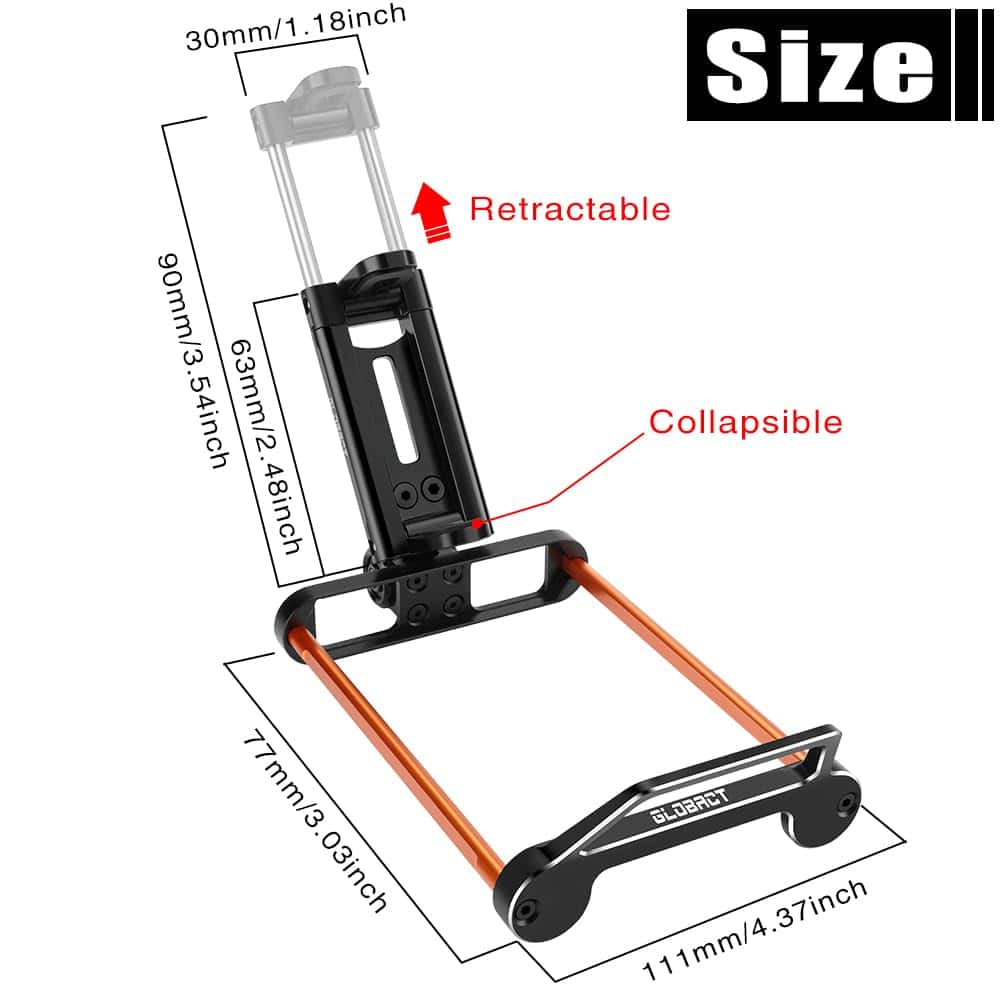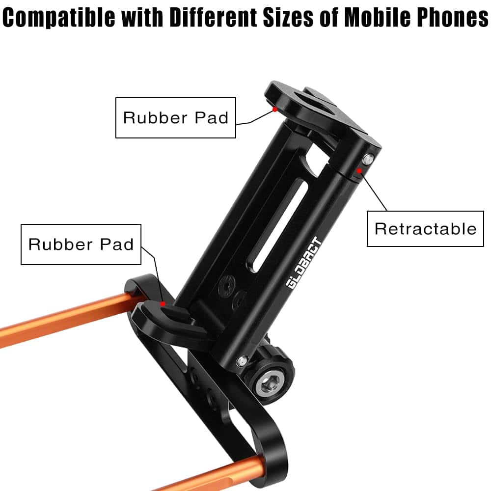 2. Soporte para teléfono El diseño telescópico y giratorio puede ser compatible con diferentes modelos de teléfonos móviles, con un ancho máximo de 85mm/3.35 pulgadas y un ancho mínimo de 55mm/2.17 pulgadas.