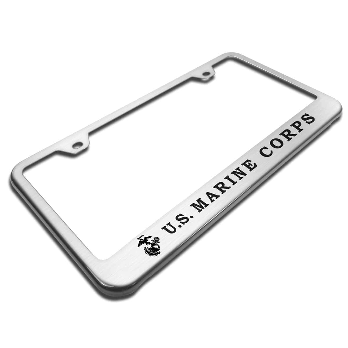 Marina oficialmente autorizado Inc. presenta este marco de matrícula de acero grabado con espejo U.S.M.C. iniciales y logotipo para que puedas mostrar tu apoyo y orgullo. Este marco cuenta con un diseño estándar con un borde ancho que abarca toda la longitud del borde inferior del marco, con letras grabadas láser en fuentes de fábrica o cursivas para mayor elegancia. Fabricado con los mejores materiales y mano de obra, este marco de matrícula de acero inoxidable está disponible en opciones de color de cromo pulido, acero inoxidable cepillado, negro u oro. Además, incluye hardware específico para vehículos y tapas antirrobo a juego para ocultar el hardware antiestético. ¡Obtén ahora este marco de matrícula de calidad excepcional para tu vehículo y muestra tu apoyo con estilo!