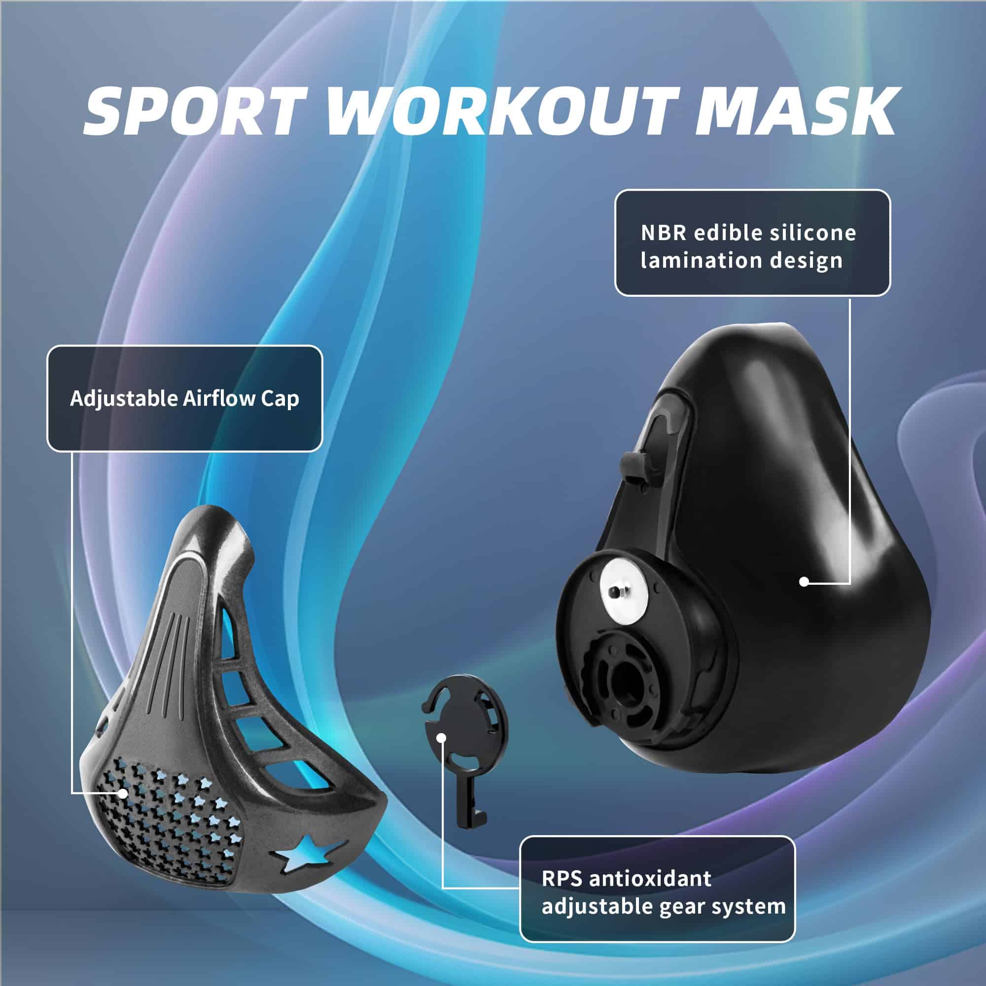 2. Duradera y ajustable: las máscaras de entrenamiento deportivo están hechas de silicona de alta calidad y bandas elásticas transpirables con una resistencia respiratoria de Clase 4 que satisfacen las necesidades de todos, desde principiantes hasta profesionales, y pueden ajustarse según las condiciones individuales y la intensidad del entrenamiento.