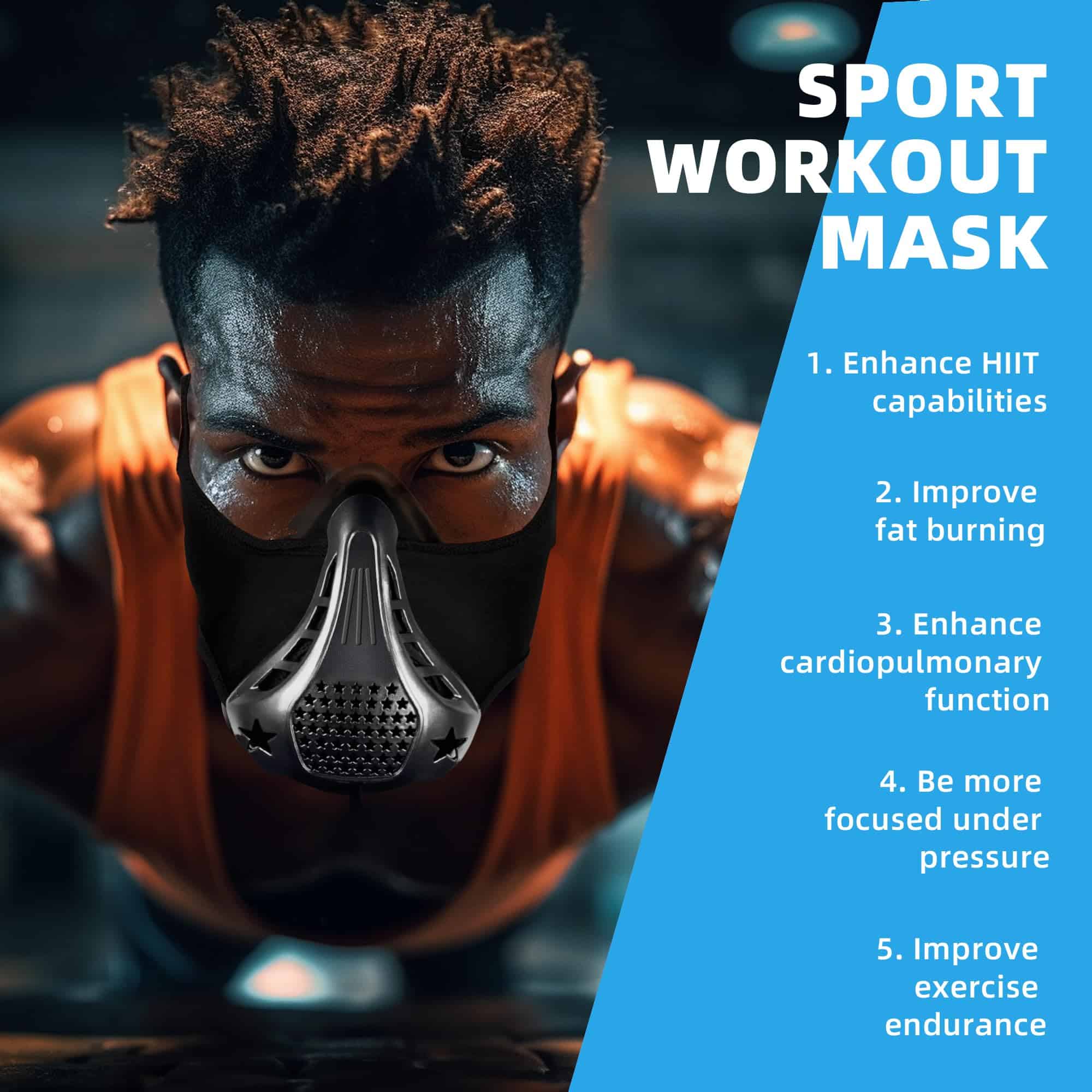 4. Entrenamiento respaldado científicamente: Diseñado sobre principios científicos, la máscara de entrenamiento fitness aumenta la dificultad para respirar, promueve que el cuerpo queme más calorías, mejora eficazmente la resistencia y la resistencia, y mejora aún más el efecto de entrenamiento.