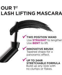 1. Máscara de Pestañas Lifting y Alargadora: Fórmula elástica que se desliza sobre las pestañas para crear cualquier look sin grumos ni escamas y dura hasta 24 horas; El cepillo flexible hace que la aplicación sea precisa y sin esfuerzo.