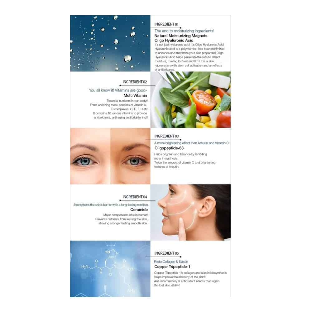 La Máscara Dual FRANZ Jet 2EA combina una máscara hidratante con un elixir para proporcionar una profunda hidratación a la piel. Con ingredientes de belleza coreana como mucina de caracol y centella asiática, esta máscara nutre y calma la piel, dejándola suave y humectada. Su fórmula sin fragancia la hace adecuada para piel sensible, mientras que sus beneficios hidratantes ayudan a mantener la piel flexible y humectada. Adecuada para todo tipo de piel, incluyendo piel grasa, mixta y sensible, la Máscara Dual FRANZ Jet 2EA es imprescindible en tu rutina de cuidado de la piel.
