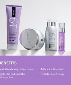 Formulada específicamente para cabellos grises, blancos, rubios platino o plateados, la Mascarilla 19 Pro Silver es el aliado perfecto para mantener la frescura de tu color y la hidratación de tu cabello y cuero cabelludo. Además, su fórmula sin parabenos, cloruro de sodio, sls/sles y su compromiso con la no crueldad animal, garantizan un cuidado completo y respetuoso con tu melena.