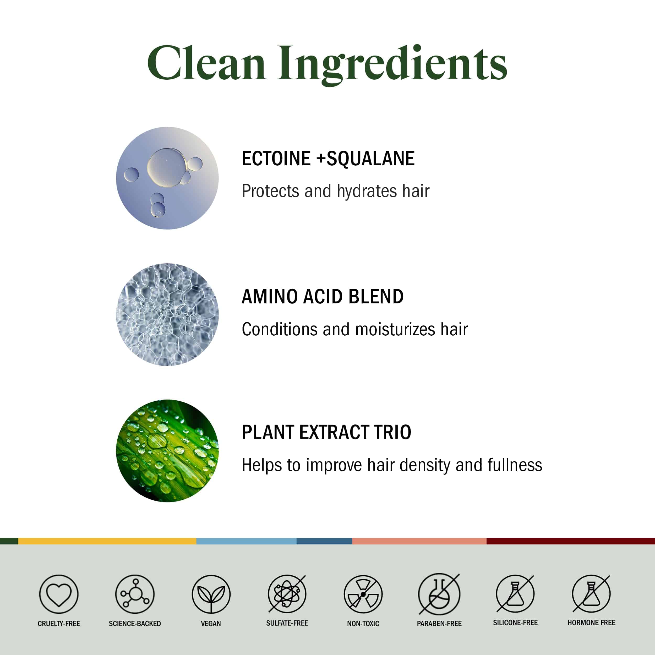 Mascarilla capilar densificante e hidratante: Nutre y revitaliza el cabello fino sin apelmazarlo; Hidratación ligera para todo tipo de cabello y uso diario. Infundida con una mezcla de aminoácidos, esta mascarilla espesante mejora el brillo y fortalece el cabello, dándole un aspecto más saludable. Cuenta con un trío de extractos de plantas que suavizan y rejuvenecen el cabello, proporcionando nutrientes esenciales. Contiene Ectoina y Escualano para ofrecer humedad específica y mejorar el grosor y la función de barrera del cabello. Especialmente formulada para apoyar el cabello durante la menopausia y la perimenopausia, manteniendo su suavidad y brillo.