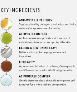 2. Péptidos, Enzimas y Ácido Hialurónico: Equilibra el tono de la piel con enzimas de frutas para disolver las células muertas de la piel. Limpia los poros para promover un cutis más claro. Los péptidos reafirmantes y el ácido hialurónico reducen la apariencia de líneas finas, arrugas y nutren la piel y defienden contra los radicales libres.