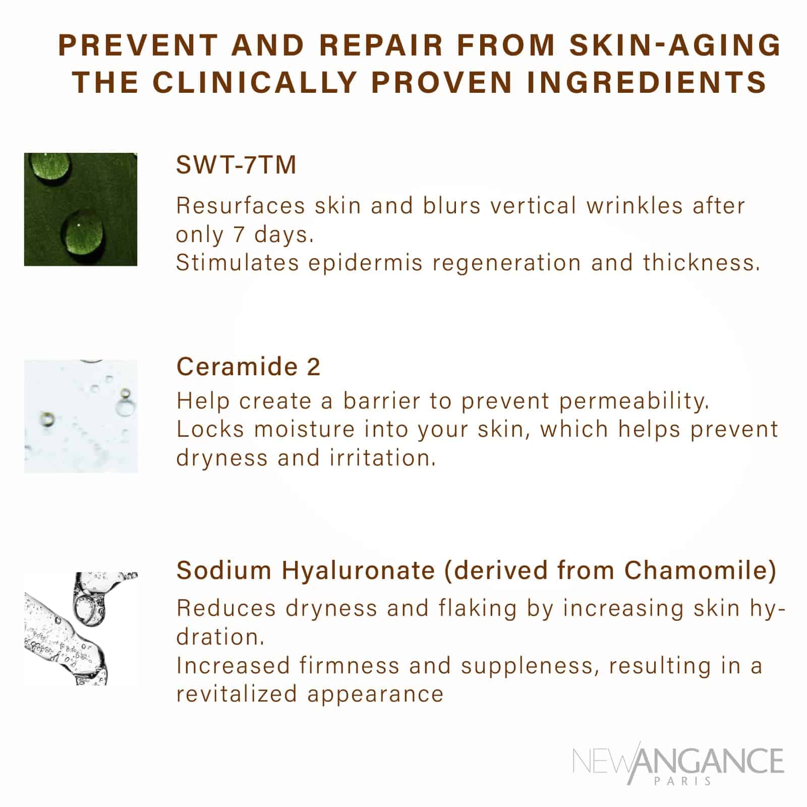 2. MÚLTIPLES COMPONENTES DE BELLEZA PRECIOSOSLa esencia de la mascarilla contiene ingredientes innovadores patentados SWT-7, que pueden promover una rápida curación de heridas, suavizar rápidamente la textura de la piel y reducir las arrugas. La ceramida puede aumentar el espesor de la capa córnea, mejorar la capacidad de retención de agua de la piel, mejorar la elasticidad de la piel y retrasar el envejecimiento de la piel. El polidextrosa dura, un factor natural de bloqueo del agua único, puede formar inmediatamente una capa de película hidratante en la superficie de la piel.