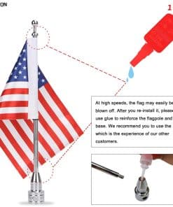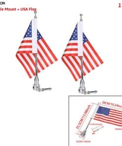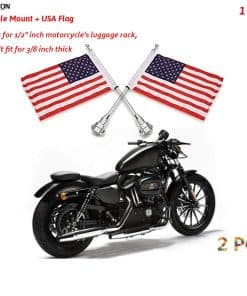 El paquete incluye 2 piezas de banderas de 6″ x 10″ diseñadas con la bandera roja americana para realzar el estilo de su motocicleta. Estas banderas son ideales para aficionados a la patria o simplemente para agregar un toque de personalidad a su moto. Compatible con una variedad de marcas populares como Harley Davidson, Yamaha, Honda, Goldwing, CB, VTX, CBR, entre otras. El montante de acero inoxidable cromado garantiza durabilidad y resistencia a las condiciones climáticas. Ajuste perfecto para portaequipajes de moto de 1/2. ¡Con estas banderas, muestre su orgullo y estilo en cada viaje!