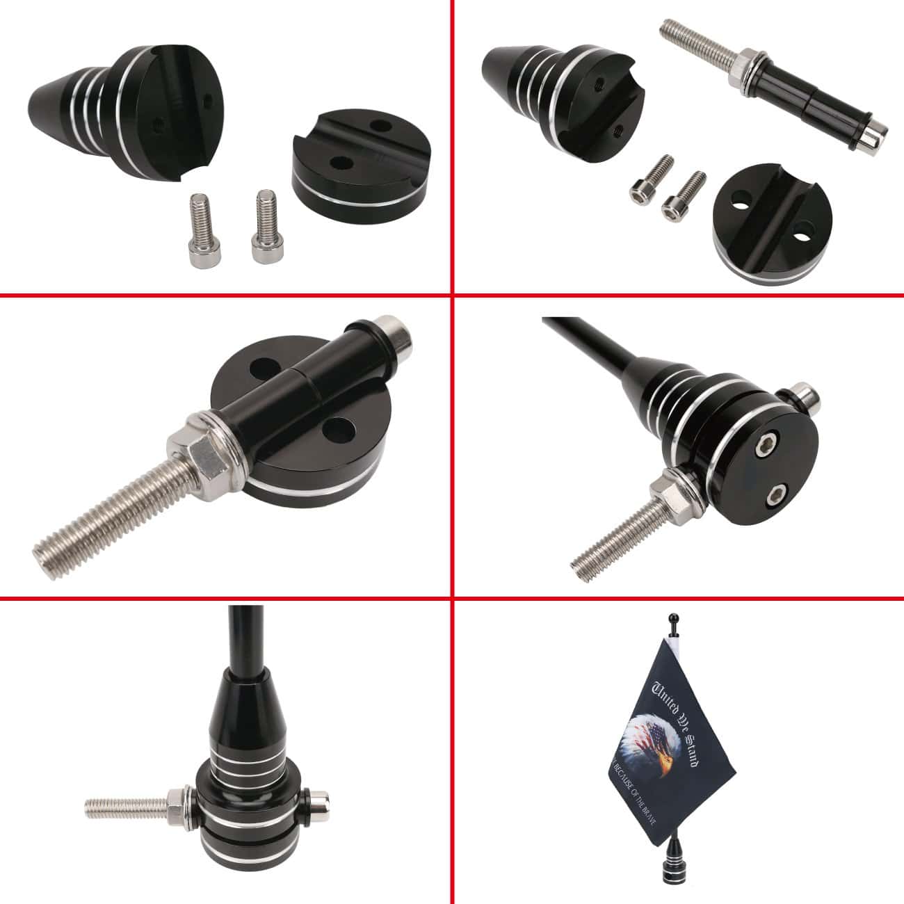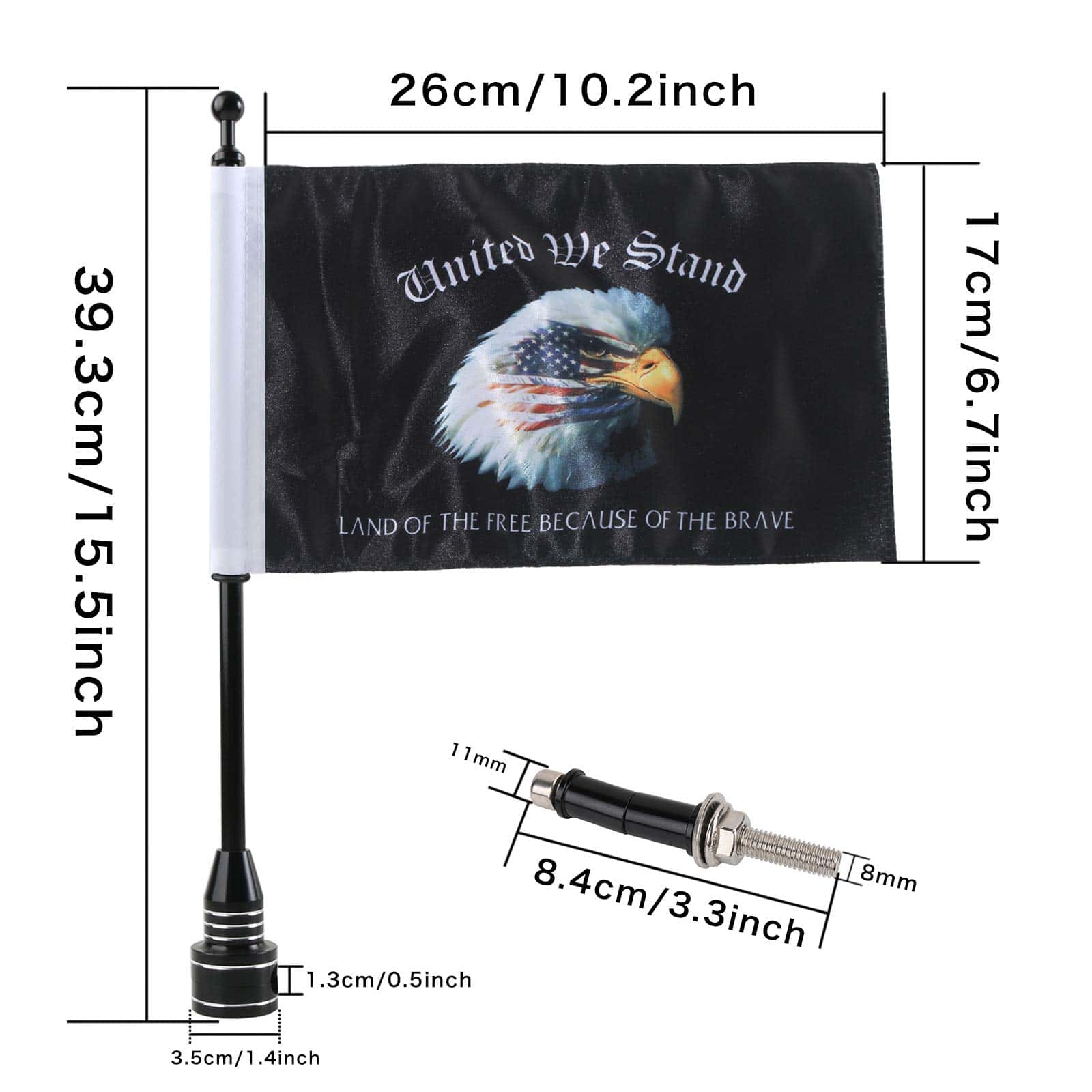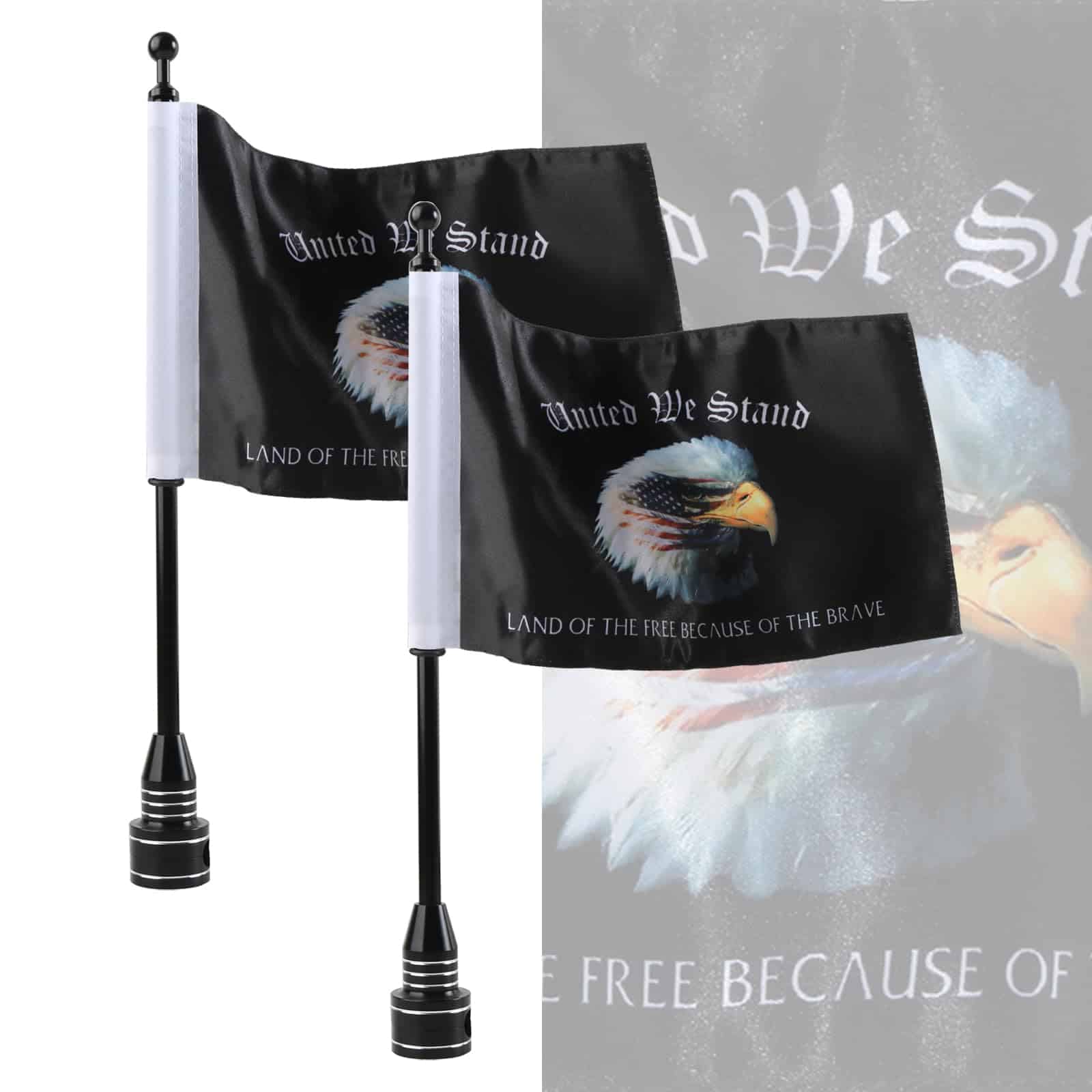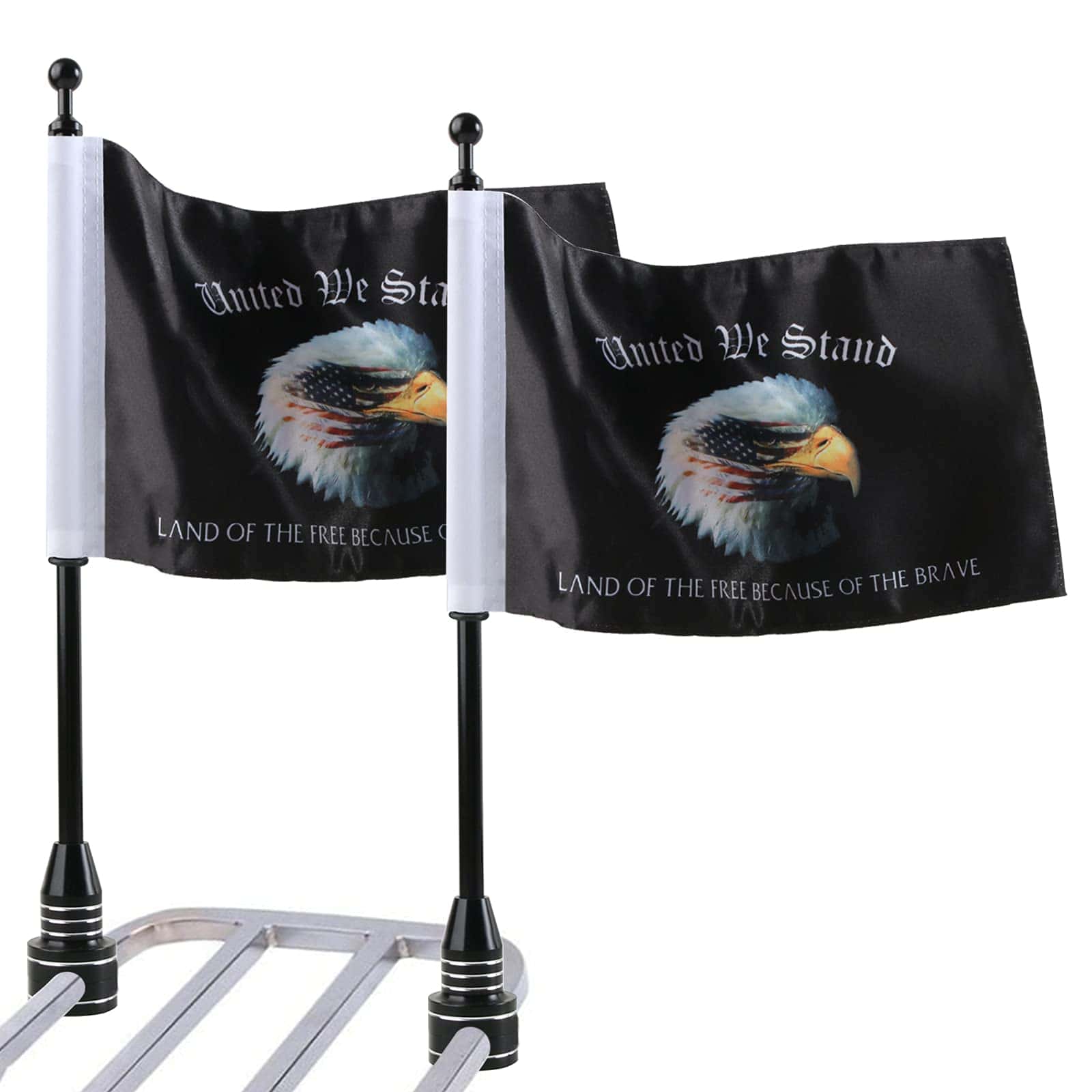 5. PAQUETE INCLUIDO: 2 soportes de bandera de motocicleta negros + 2 banderas de United We Stand – Land of the Free Because of Brave y accesorios para soportes de bandera