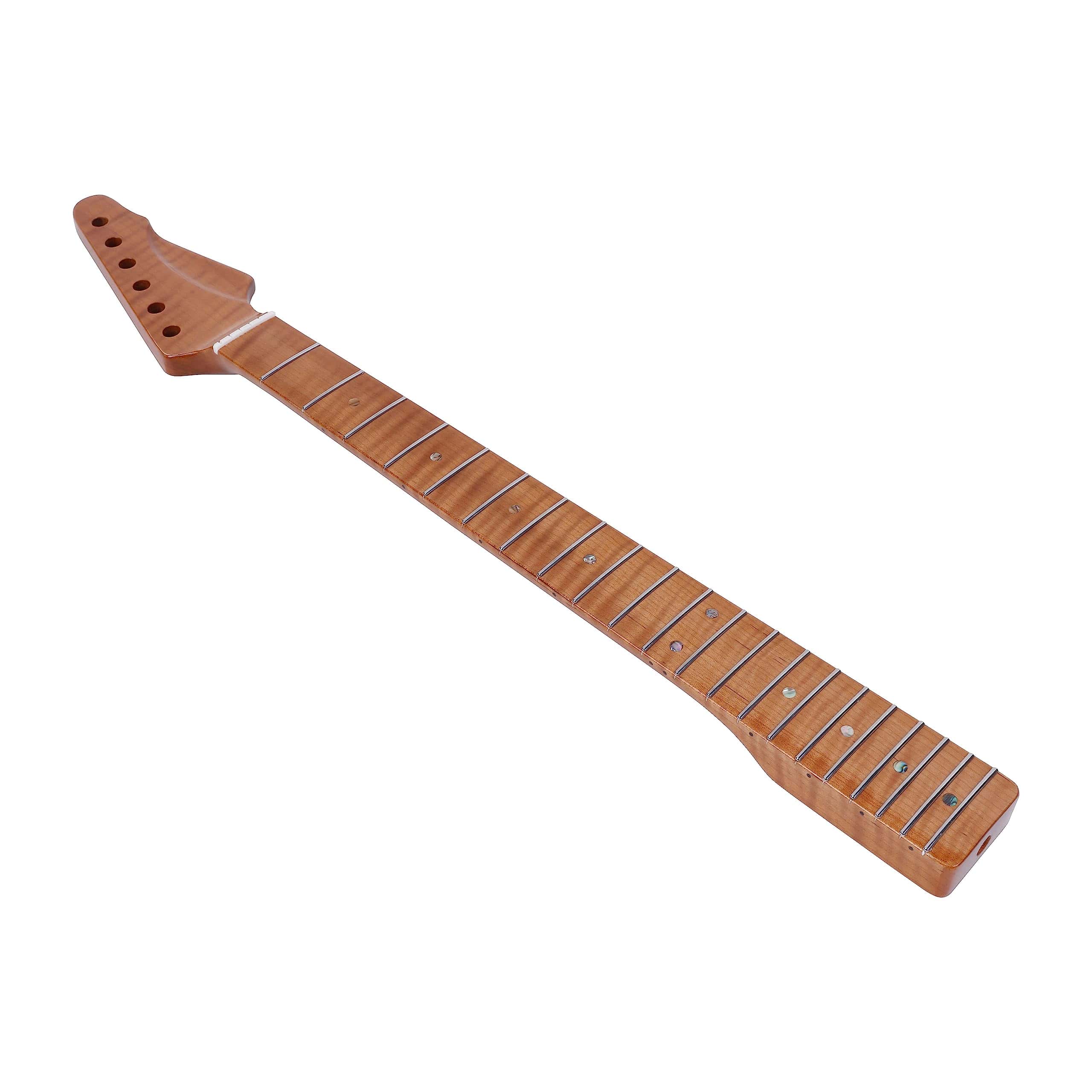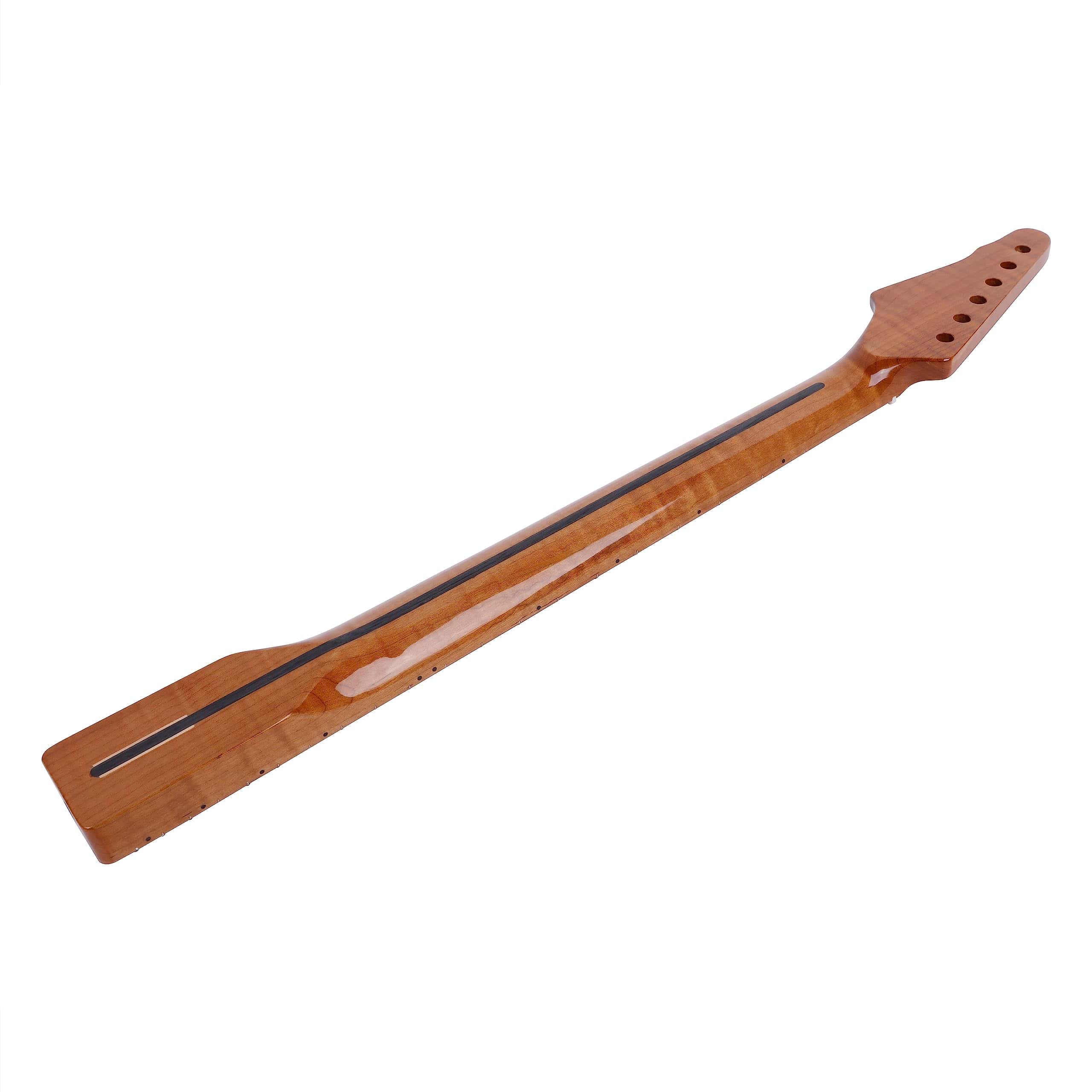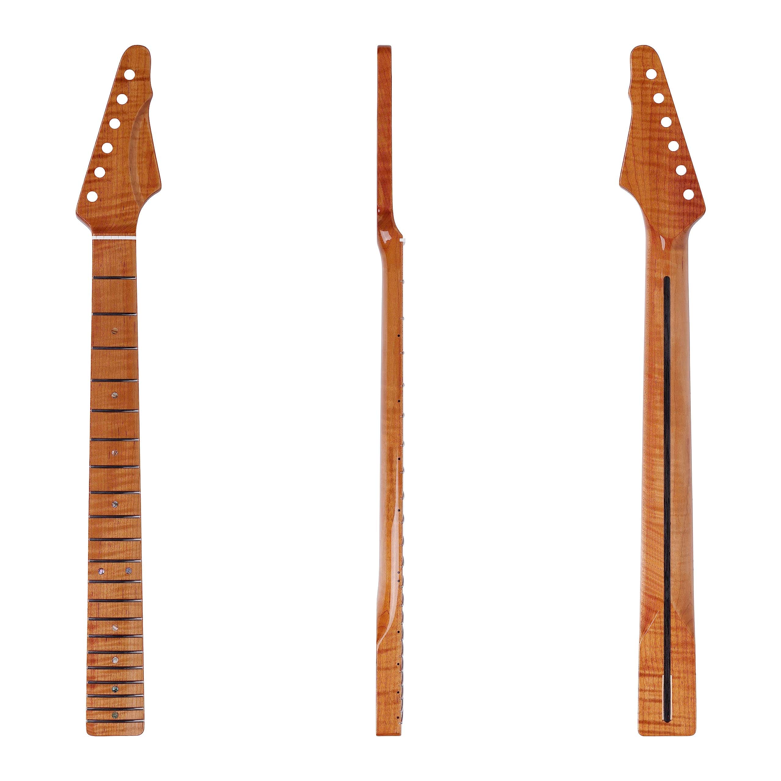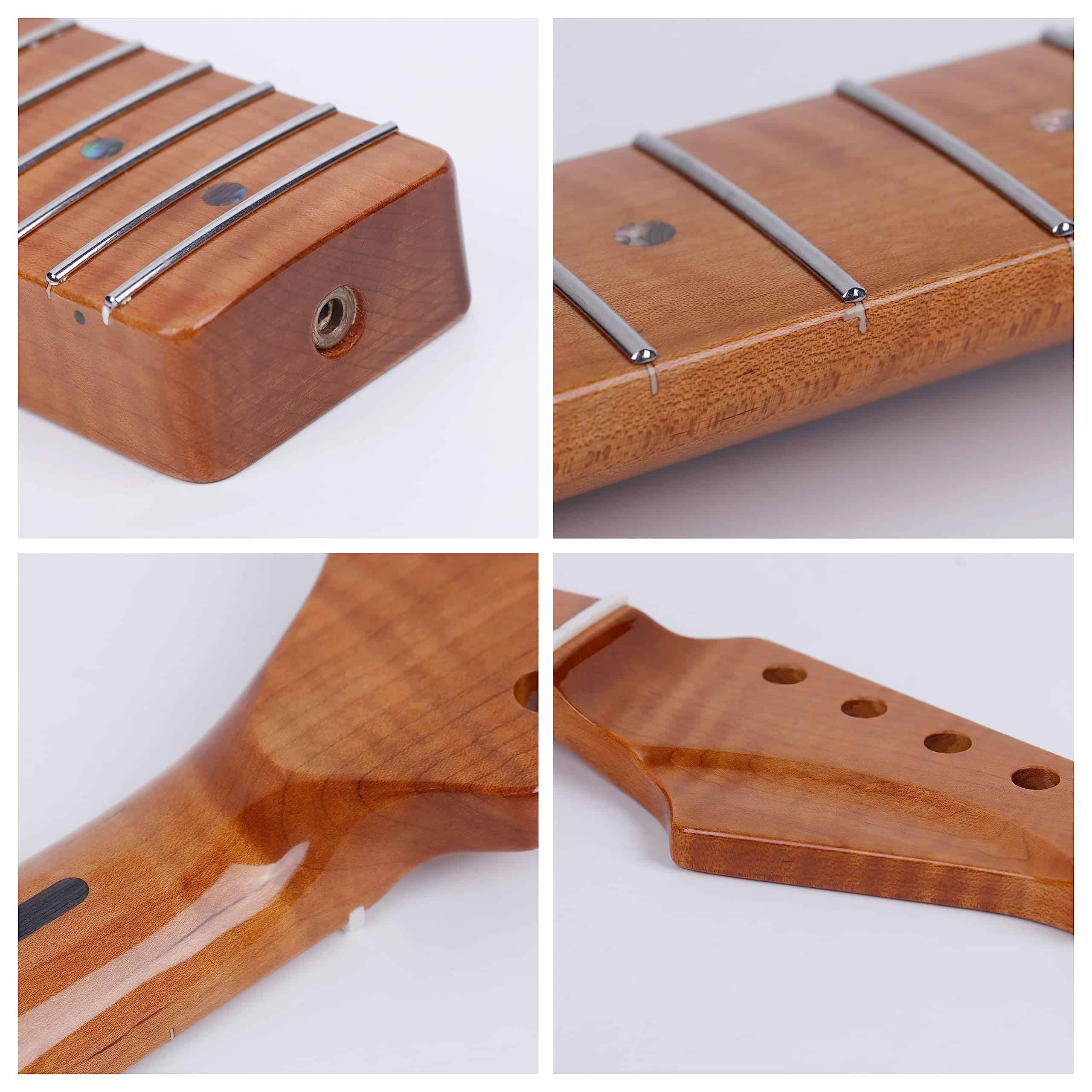 Mástil de Guitarra Eléctrica Leo Jaymz Serie Supreme – Una Pieza Seleccionada de Arce Flameado Tostado – Compatible con Estilo TL – 21 Trastes, 9.5″, Forma ‘C’ (supreme N-TL Maple). Este mástil de guitarra eléctrica de la serie Supreme de Leo Jaymz ha sido cuidadosamente fabricado con arce flameado tostado de una sola pieza seleccionado para ofrecer un sonido de alta calidad y una sensación suave al tocar. Es compatible con la sustitución de mástil de guitarra eléctrica estilo TL y cuenta con accesorios de acero inoxidable pulidos a mano con extremo redondeado que garantizan un rendimiento suave y cómodo. Las incrustaciones de concha de perla seleccionadas, la cejuela de hueso de 42 mm y el radio de 9.5″ (241 mm) son características que hacen de este mástil una excelente elección para músicos exigentes. Además, la longitud de escala de 25.5″ (648 mm) y los 21 trastes aseguran una experiencia de juego óptima. Si buscas un mástil de guitarra eléctrica de alta calidad que cumpla con tus expectativas, el Mástil de Guitarra Eléctrica Leo Jaymz Serie Supreme es la elección perfecta.