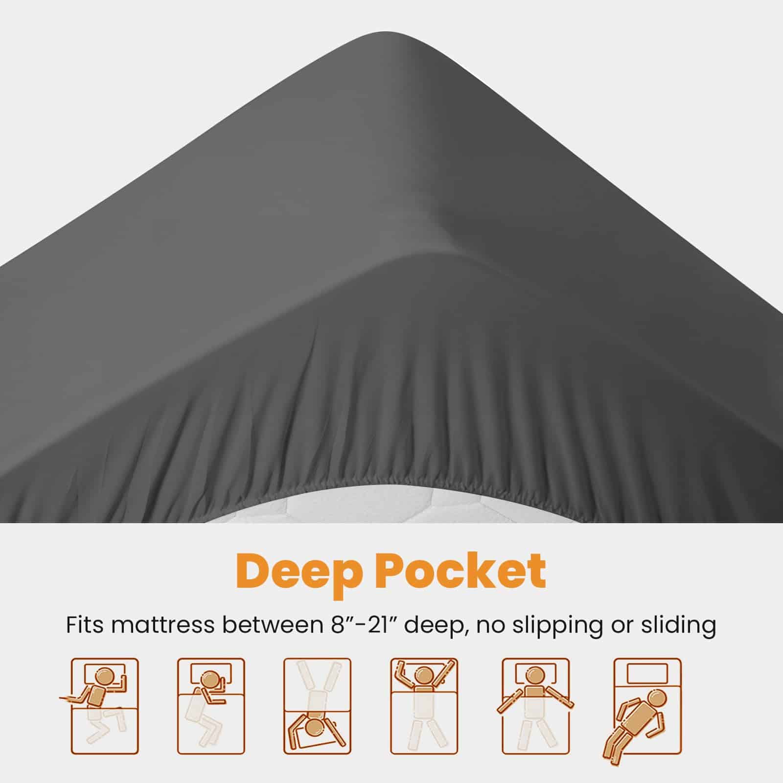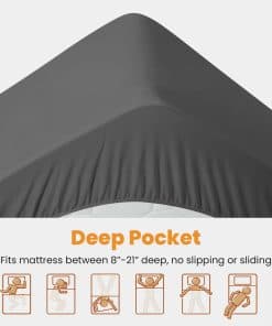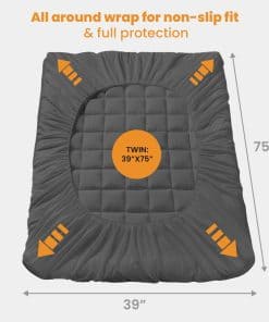 3. Ajuste de Bolsillo Profundo El protector de colchón acolchado se ajusta perfectamente a colchones de hasta 21″ de profundidad. El borde elástico alrededor asegura un ajuste cómodo y seguro, sin deslizamientos ni arrugas, sin importar cuánto te muevas.