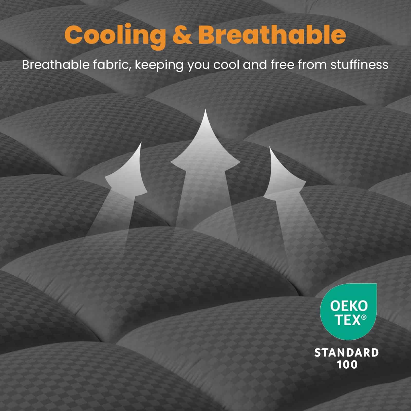 2. Nuestro topper para colchón tamaño individual cuenta con un diseño único y transpirable que promueve el flujo de aire, manteniéndote fresco y cómodo durante toda la noche.