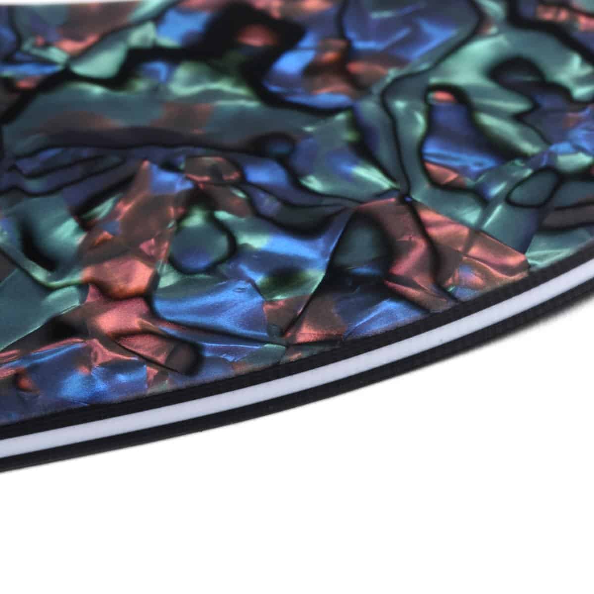 Material en Blanco para Pickguard de Guitarra Eléctrica Bajo, ideal para proyectos de bricolaje en la personalización de pickguards para guitarras eléctricas y bajos. Esta hoja de placa de protección personalizada de 4 capas de concha de abulón de 435x290mm de Musiclily es suficiente para dos pickguards Strat, Tele, J Bass o uno P Bass. Fabricado en plástico con un grosor de 2,0-2,2 mm, es fácil de cortar para adaptarse a tus necesidades. El tamaño de la hoja es de 435x290x2,2 mm (17×12 pulgadas) y cuenta con una doble capa de películas protectoras en la parte superior para garantizar su integridad. El paquete incluye 1 hoja de material para pickguard para que puedas comenzar tu proyecto de personalización con facilidad.