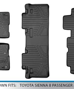 Estos revestimientos y tapetes para piso MAXLINER son la solución perfecta para proteger su Toyota Sienna de 8 pasajeros del desgaste diario y de los elementos. El ajuste personalizado garantiza que se adapten perfectamente al espacio de su vehículo, creando una barrera resistente contra la nieve, el lodo, la arena y el agua salada. Además, el diseño elegante y antideslizante mejora la apariencia general de su automóvil, mientras que la fácil limpieza garantiza que siempre luzcan como nuevos. Proteja su vehículo y haga una elección ecológica con estos revestimientos y tapetes para piso de MAXLINER.
