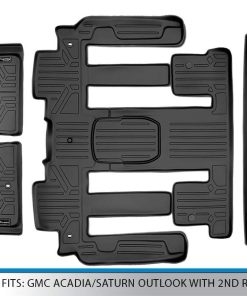 Compatible con GMC Acadia 2009-2016 / Acadia Limited 2017 / Saturn Outlook 2009-2010 (Asientos de 2da fila en cubo). Estas alfombrillas para piso ofrecen protección resistente a las manchas contra todos los elementos, incluyendo nieve, barro, arena y agua salada. El borde elevado y el diseño personalizado construido utilizando tecnología de escaneo de vehículos innovadora asegura el ajuste perfecto para proteger el piso de alfombra de su vehículo del clima, derrames y cualquier desorden. Fáciles de limpiar simplemente rociando con una manguera o limpiando con un paño húmedo utilizando jabón y agua. Mejore la apariencia general del interior de su automóvil con nuestro diseño texturizado, antideslizante y elegante. Nuestra protección 100% inodora está hecha con una mezcla de plástico de alta calidad reciclable de goma y polietileno.