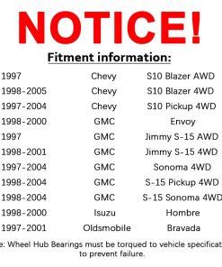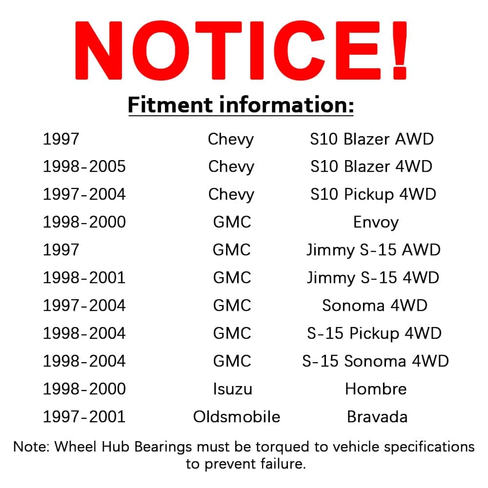 1. Compatibilidad exacta con los modelos mencionados. 2. El ensamblaje del rodamiento de cubo de rueda está especialmente probado en calidad y diseñado según los estándares de fabricación más altos, cumpliendo o excediendo la calidad OE. 3. Las triple juntas proporcionan el mejor rendimiento con un mínimo de ruido y vibración. Instalación rápida y fácil. 4. Guía de compra: Utilice el filtro (en la parte superior de la página) para elegir el año, marca, modelo de su vehículo, haga clic en Verificar compatibilidad o consulte la información de ajuste en la página de descripción para asegurarse de que este artículo se ajuste a su automóvil. 5. Servicio: Intentamos proporcionar productos de calidad y un servicio excelente a nuestros clientes. Cualquier problema, contáctenos primero y obtendrá una solución satisfactoria.