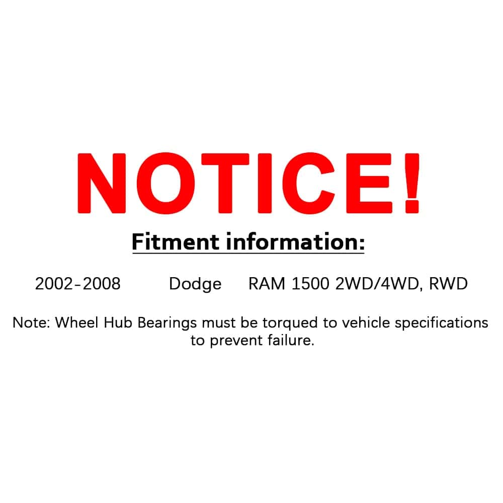 2002-2008 para Dodge RAM 1500 2WD o 4WD, RWD, 5 Pernos, 2 Ruedas Delanteras sin ABS
