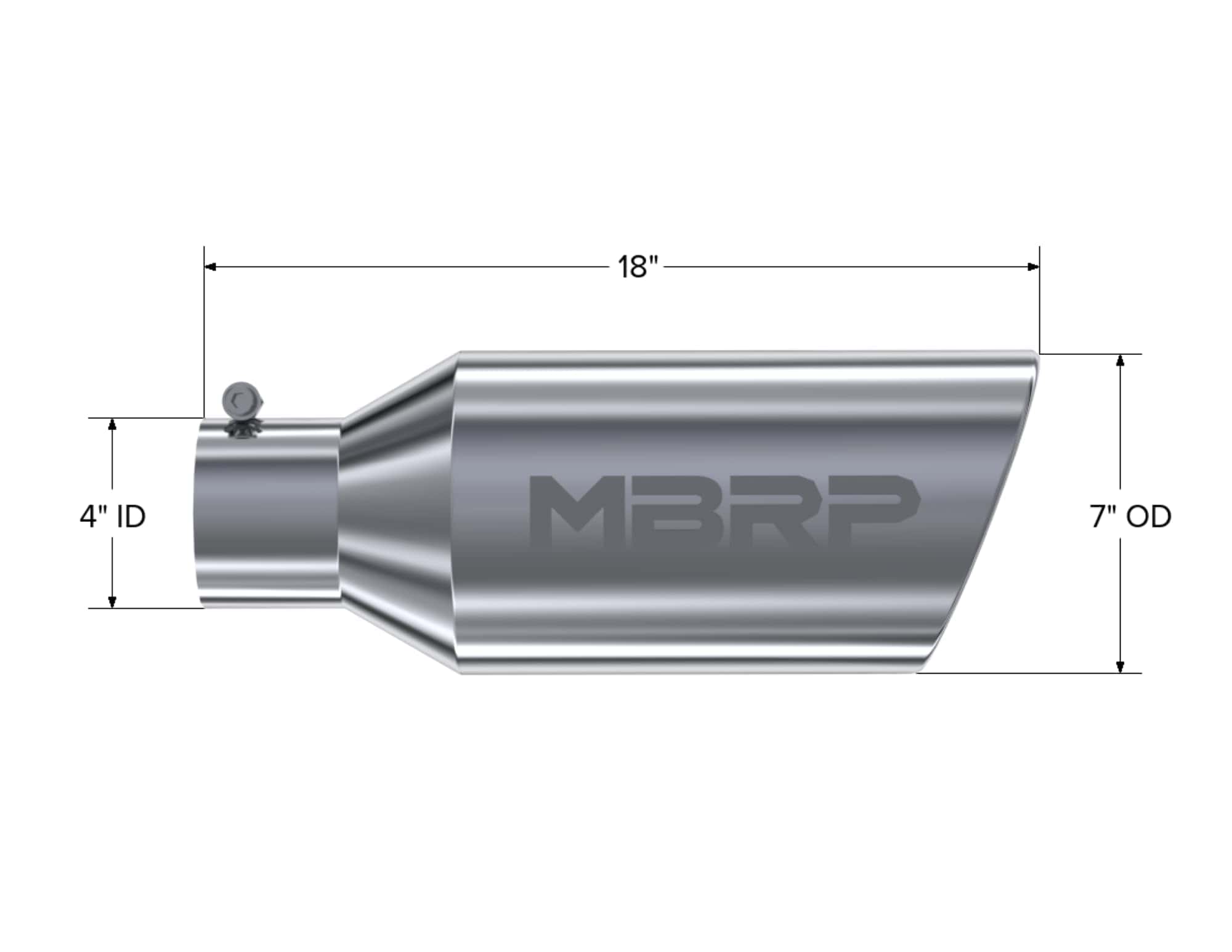 La punta de escape universal con extremo enrollado y angulado tiene dimensiones de 7 pulgadas de diámetro exterior, 4 pulgadas de entrada y 12 pulgadas de longitud. Estas puntas te dan la oportunidad de personalizar realmente tu sistema de escape. La construcción de acero inoxidable T304 pulido garantiza que se vean geniales mucho tiempo después de que las puntas de cromo más baratas se hayan oxidado. Son fáciles de limpiar e instalar. El diseño sin abrazadera, sin soldadura, hace que sea fácil tener la punta que mejor se adapte a ti y el logo de MBRP Inc muestra el hecho de que tienes el mejor sistema de escape de rendimiento. La punta se ajusta a configuraciones de 4 pulgadas.