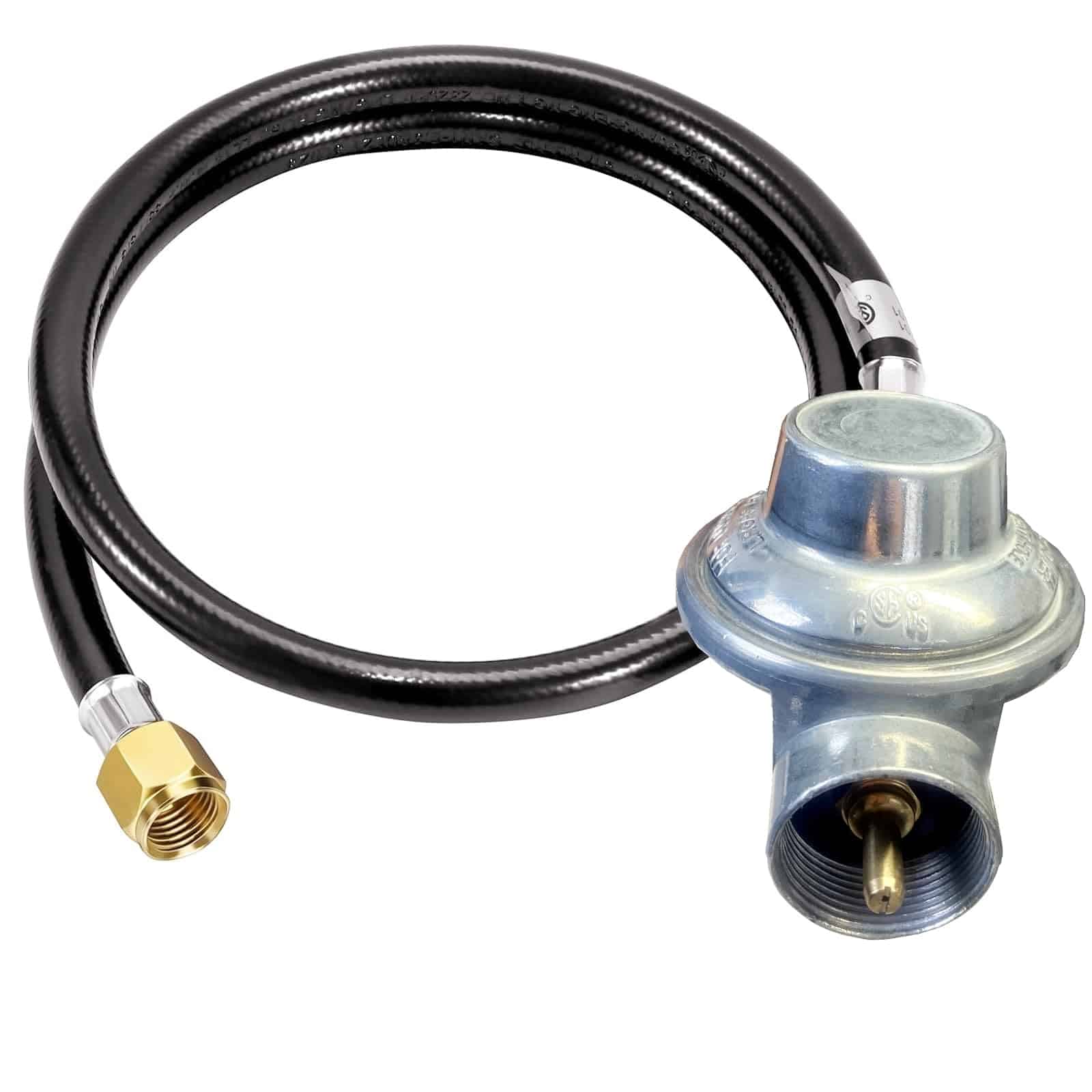Ensamblaje de manguera y regulador de propano de baja presión, utilizado para conectar el aparato de parrilla de camping al tanque de almacenamiento de gas de 1 lb.