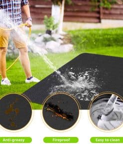 McKuk Tapete para Parrillas de Exterior de 70 x 48 Pulgadas, Fácil de Limpiar Tapete Reutilizable para Parrilla en la Terraza, Doble Cara Resistente al Fuego, Resistente al Agua y a la Grasa, Apto para Tapete de Chimenea Interior y Tapete para Fogata es la solución perfecta para mantener limpios tus suelos al cocinar al aire libre. Con su resistencia a altas temperaturas y su facilidad de limpieza, este tapete es ideal para proteger contra derrames, salpicaduras y otros desechos de la parrilla. Su tamaño generoso de 70 x 48 pulgadas permite cubrir una amplia área y garantiza una protección completa. La calidad confiable garantiza durabilidad y seguridad, mientras que la versatilidad del producto permite su uso en una variedad de entornos al aire libre. Con un compromiso de calidad y un servicio al cliente amigable, el tapete McKuk para parrillas de exterior es la elección perfecta para mantener limpio y seguro tu espacio al aire libre.