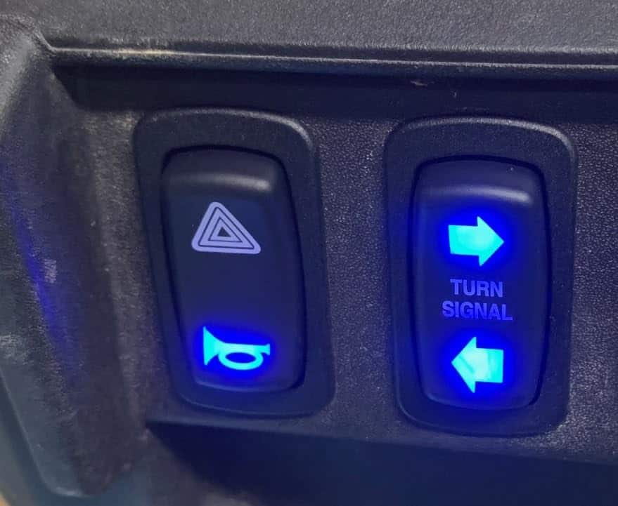 El interruptor basculante azul iluminado de izquierda/derecha se enciende con la llave y también parpadea cuando se selecciona, indicando así la dirección.