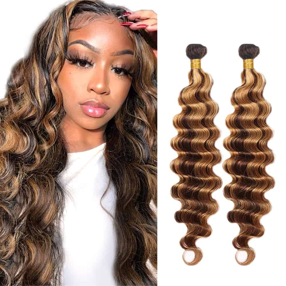 3. Color de las Extensiones de Cabello Humano: Mechones de Cabello Ondulado Profundo P4/27 Marrón Destacado Mezclado Con Rubia.