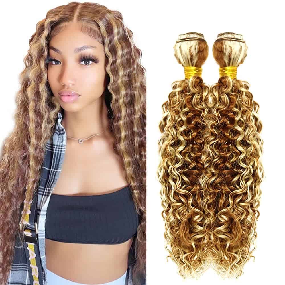 3. Color de los mechones de cabello humano: color rubio resaltado P30/613 marrón Water Wave Bundles de cabello humano. Puede ser teñido y alisado, permanentado, decolorado, resaltado, rizado o estilizado como su propio cabello.