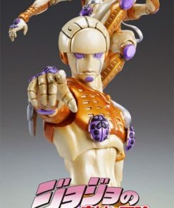 Gold Experience ha aparecido en la serie Super Action Statue. JoJo’s Bizarre Adventure: Super Action Statue es una serie de figuras de personajes y Stand lanzadas por Medicos Entertainment. Las figuras son articulables y puedes disfrutar de varias poses diferentes. Cada figura tiene el logo «S.A.S: Super Action Statue» en la caja. Los colores utilizados para las figuras son supervisados por el autor Hirohiko Araki. JoJo’s Bizarre Adventure es una serie de manga y anime japonés creada por Hirohiko Araki y publicada por Shueisha. Siendo compuesta por múltiples partes y cada una de ellas protagonizada por un JoJo diferente, la serie es conocida por su arte y su trama, notable por eventos sobrenaturales y aparentemente extraños. JoJo’s Bizarre Adventure es actualmente la segunda serie más larga de comics publicada por Shueisha, la editorial de Jump comics. Medicos Entertainment, fundada en 2000, Industria: Fabricante de juguetes y figuras. Sede: Tokio, Japón. Medicos Entertainment es un fabricante de figuras de acción, juegos y juguetes relacionados con Anime, siendo una de sus series más populares Jojo’s Bizarre Adventure. La empresa ha creado varios modelos de stands y personajes, desde Phantom Blood hasta JoJolion. Su serie de productos más popular son las Super Action Statues, que presentan varias figuras basadas en personajes posables.
