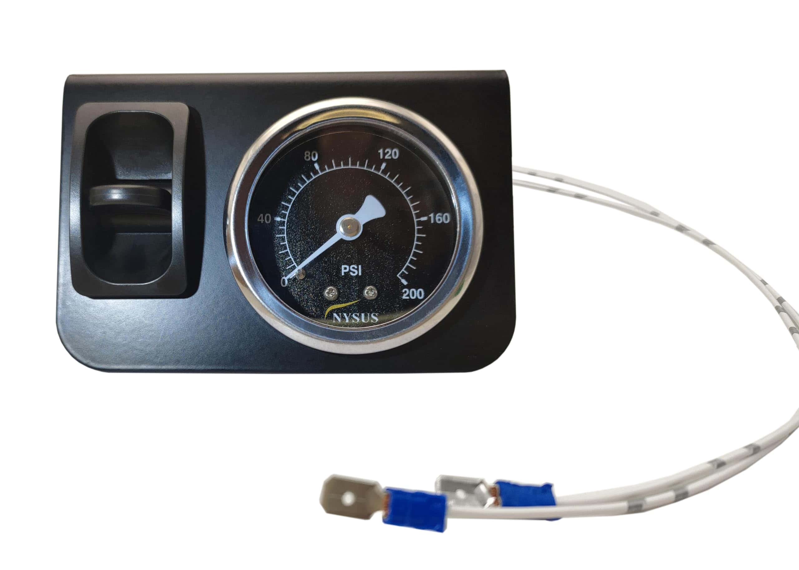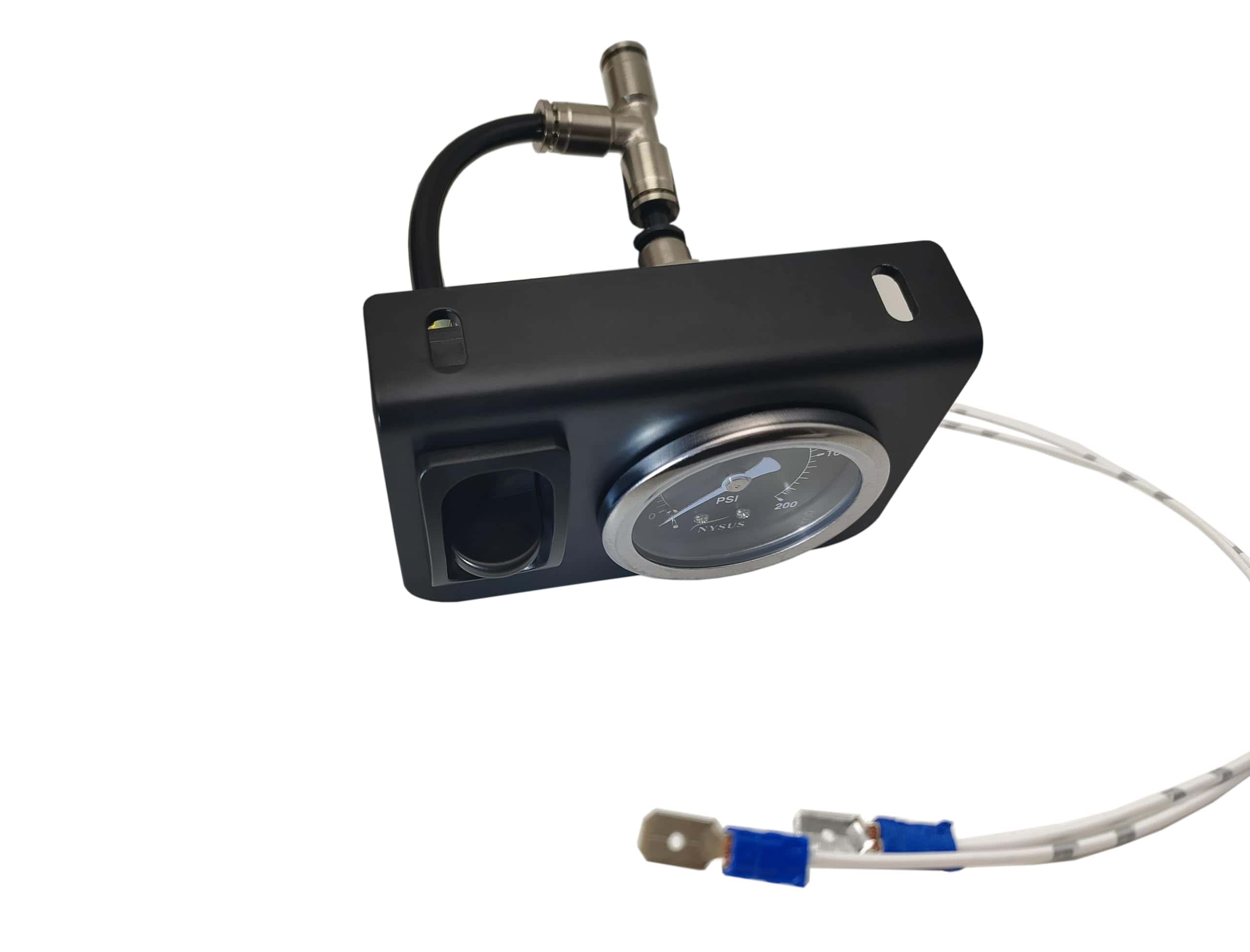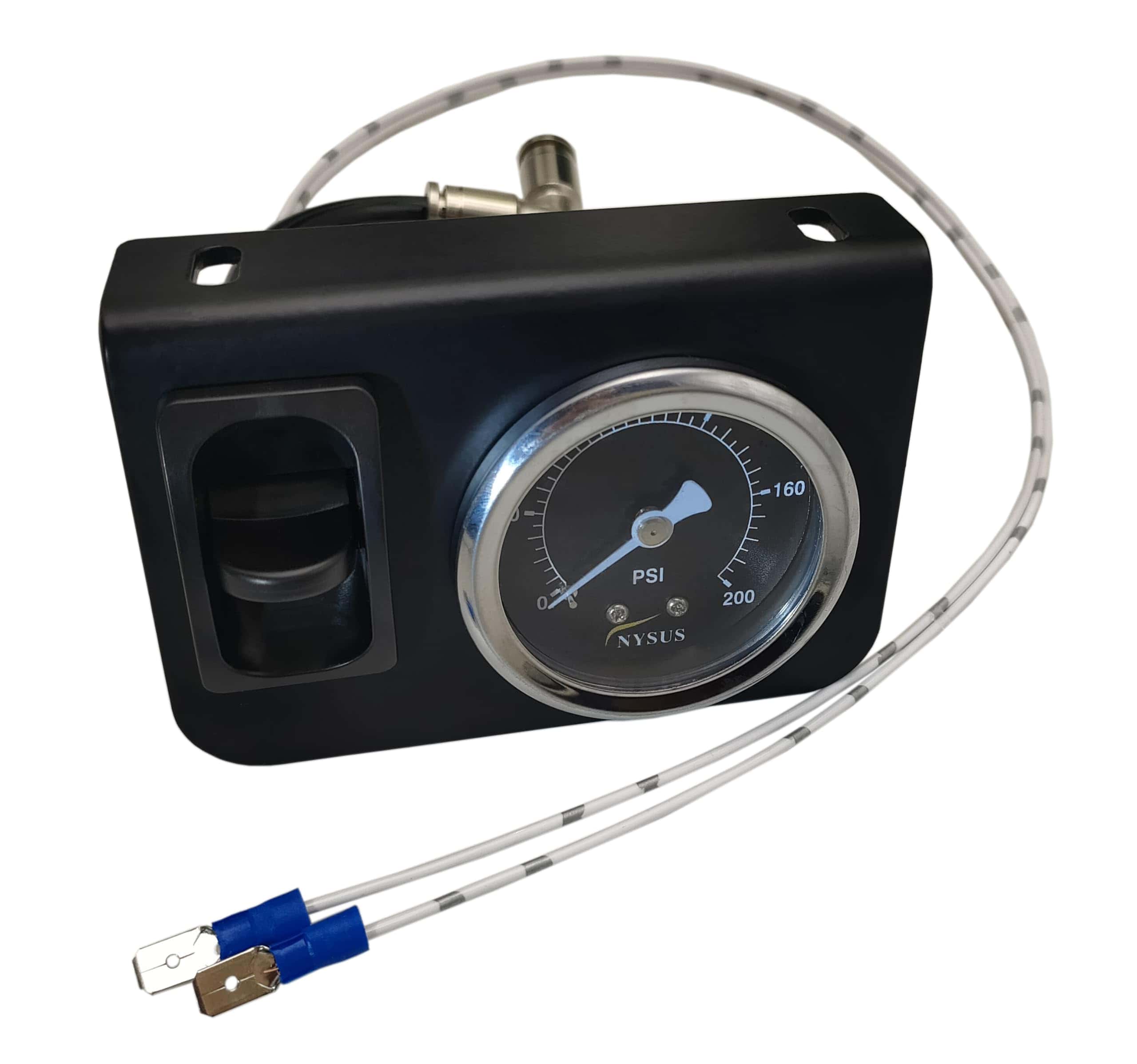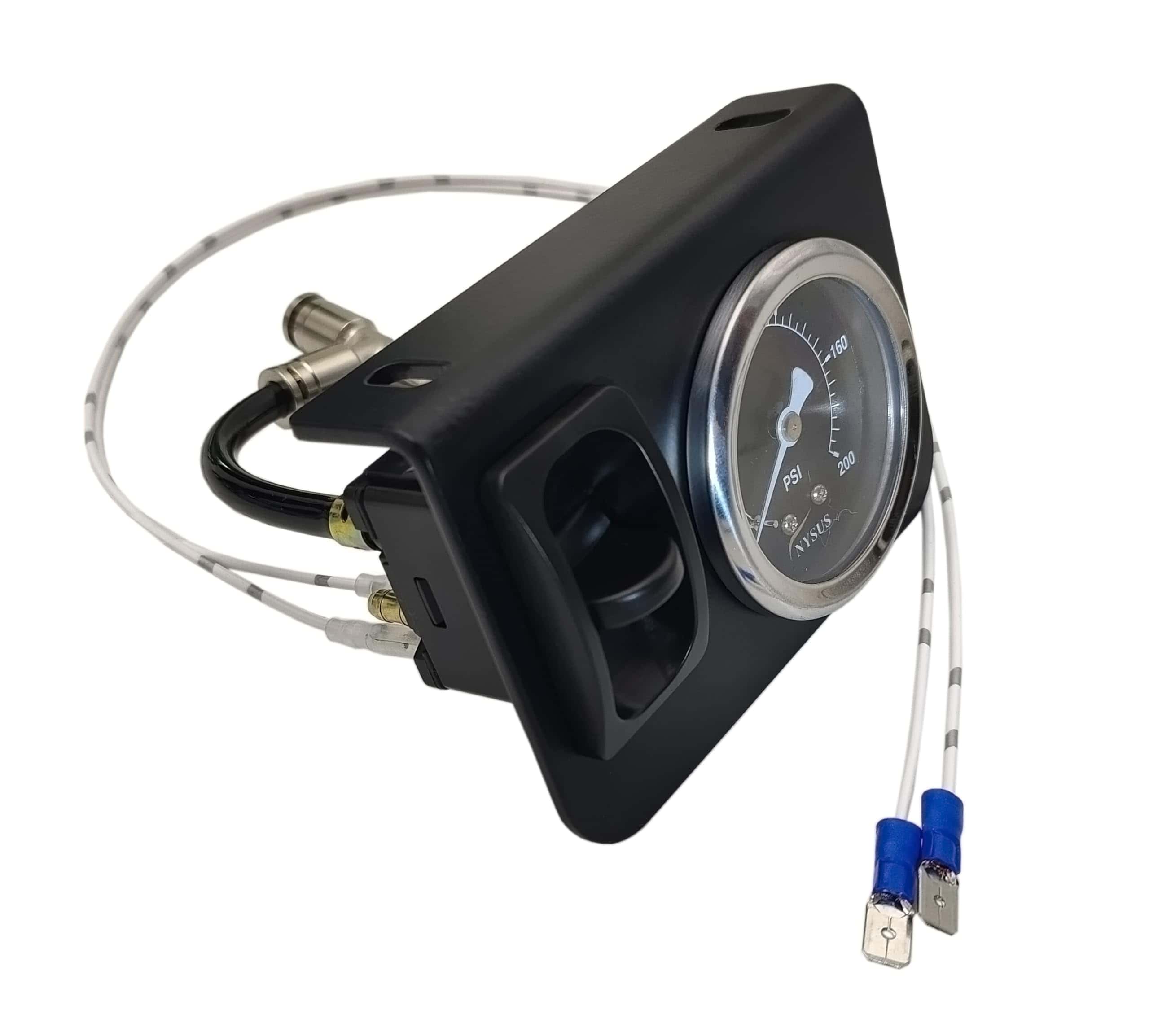 Medidor de aire dual de 200 psi con luz luminosa. 2 piezas de ensamblaje de válvulas de paleta manual en el panel. Recubrimiento en negro mate en el panel del interruptor. Instalación fácil, accesorio de aire de 1/8 NPT y cinta de teflón proporcionada, compatible con manguera de aire de 1/4. Garantía de un año.