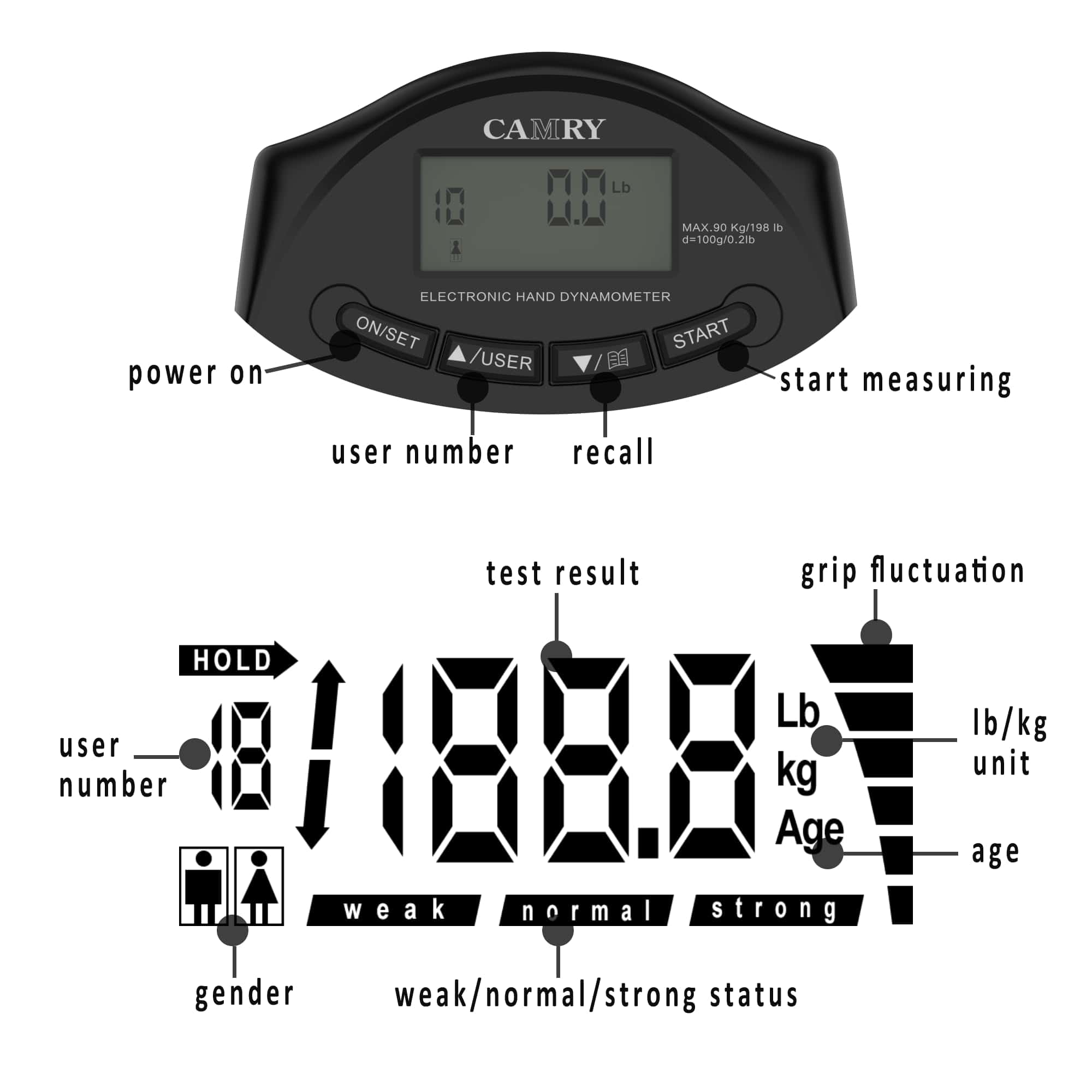 Medidor de Fuerza de Agarre Digital CAMRY Dynamometer para