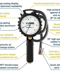 A SINGLE TOOL FOR EVERYTHING Thanks to its convenient 10-159 psi measurement scale, INFLATOR PRO is the inflator gauge for every use, from trucks to LCVs, from agricultural vehicles to passenger cars, provided with a 59″ hose for standard bore valves.