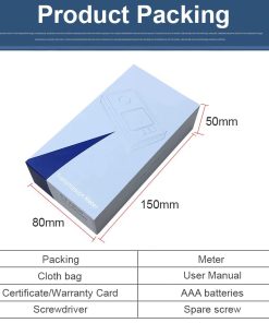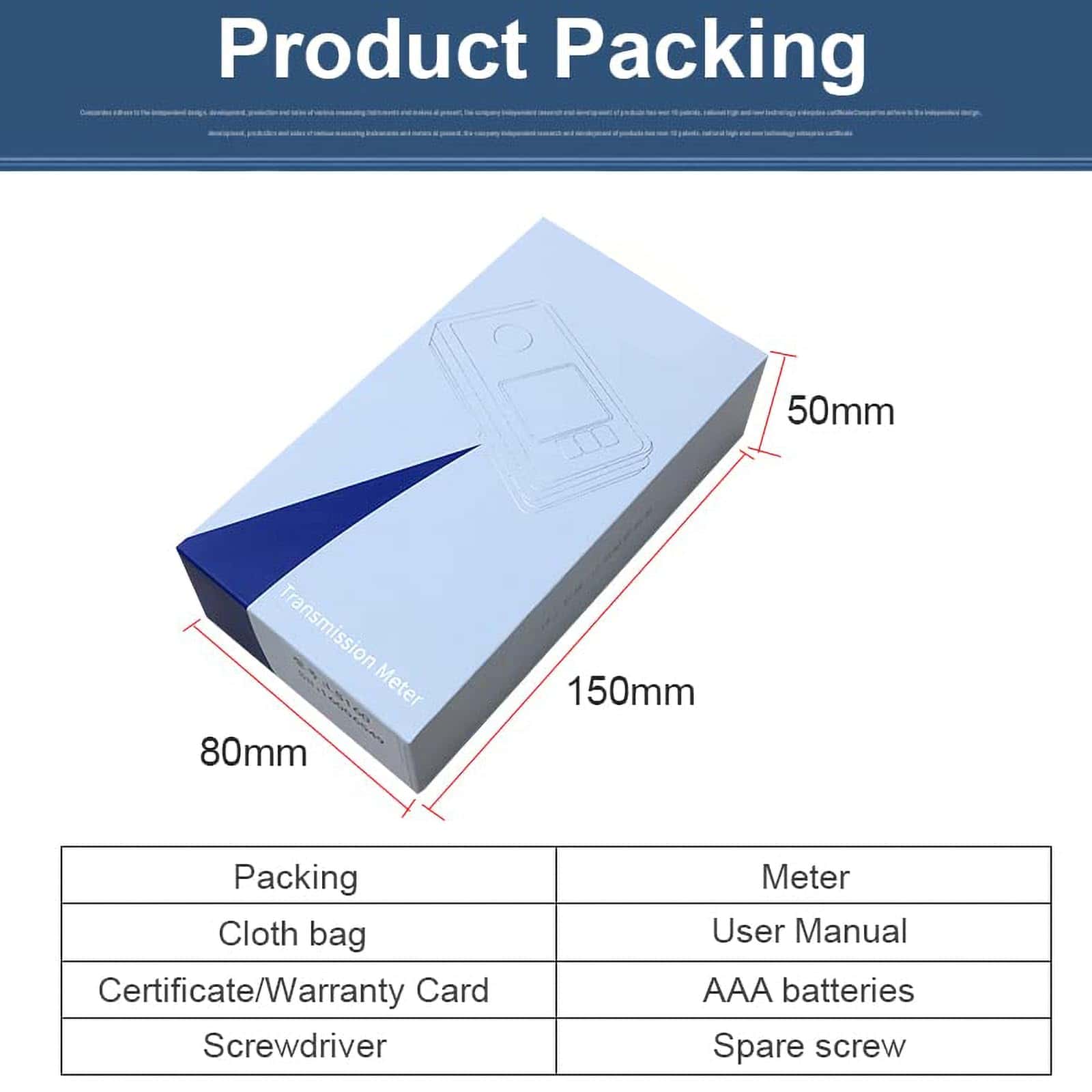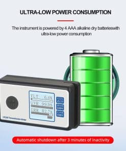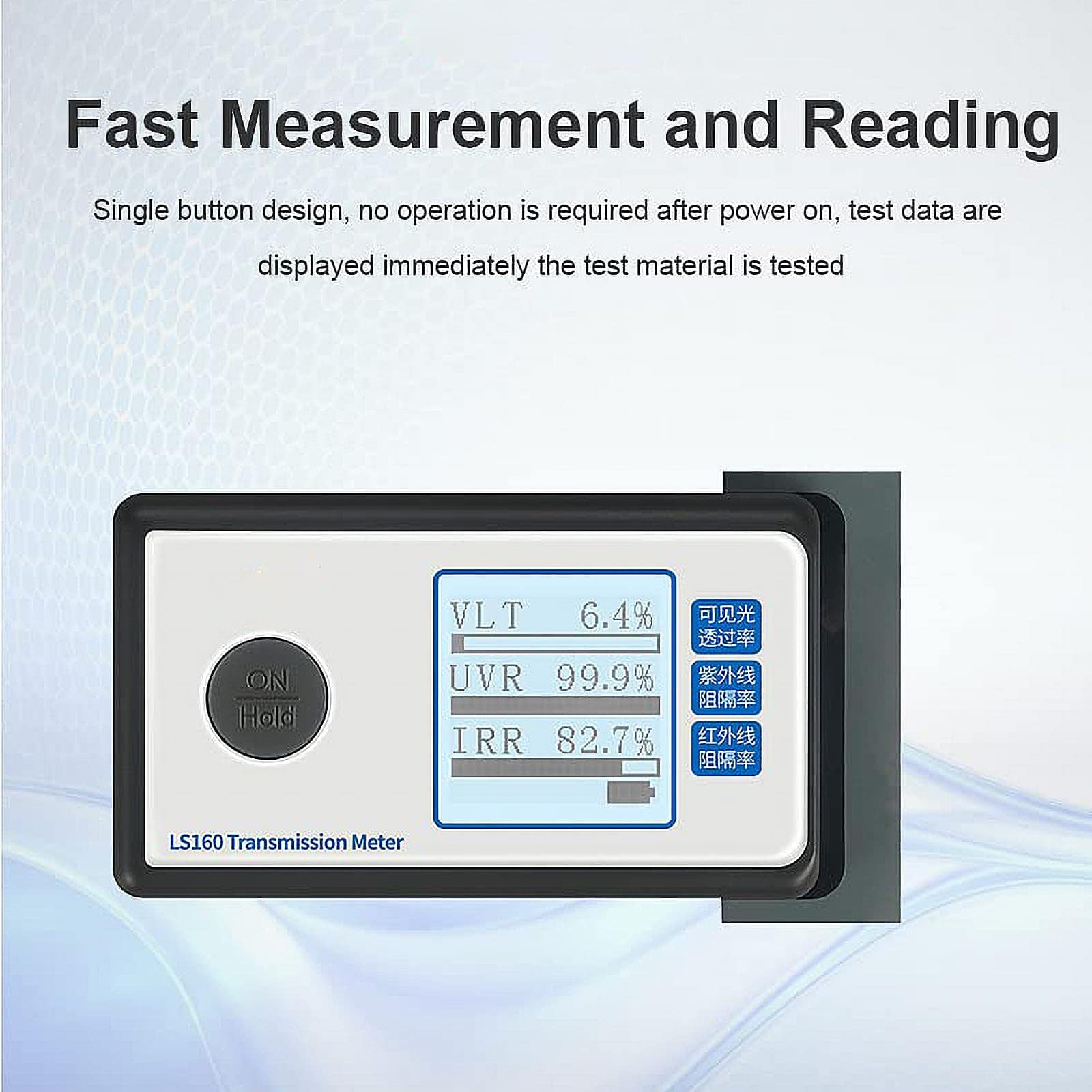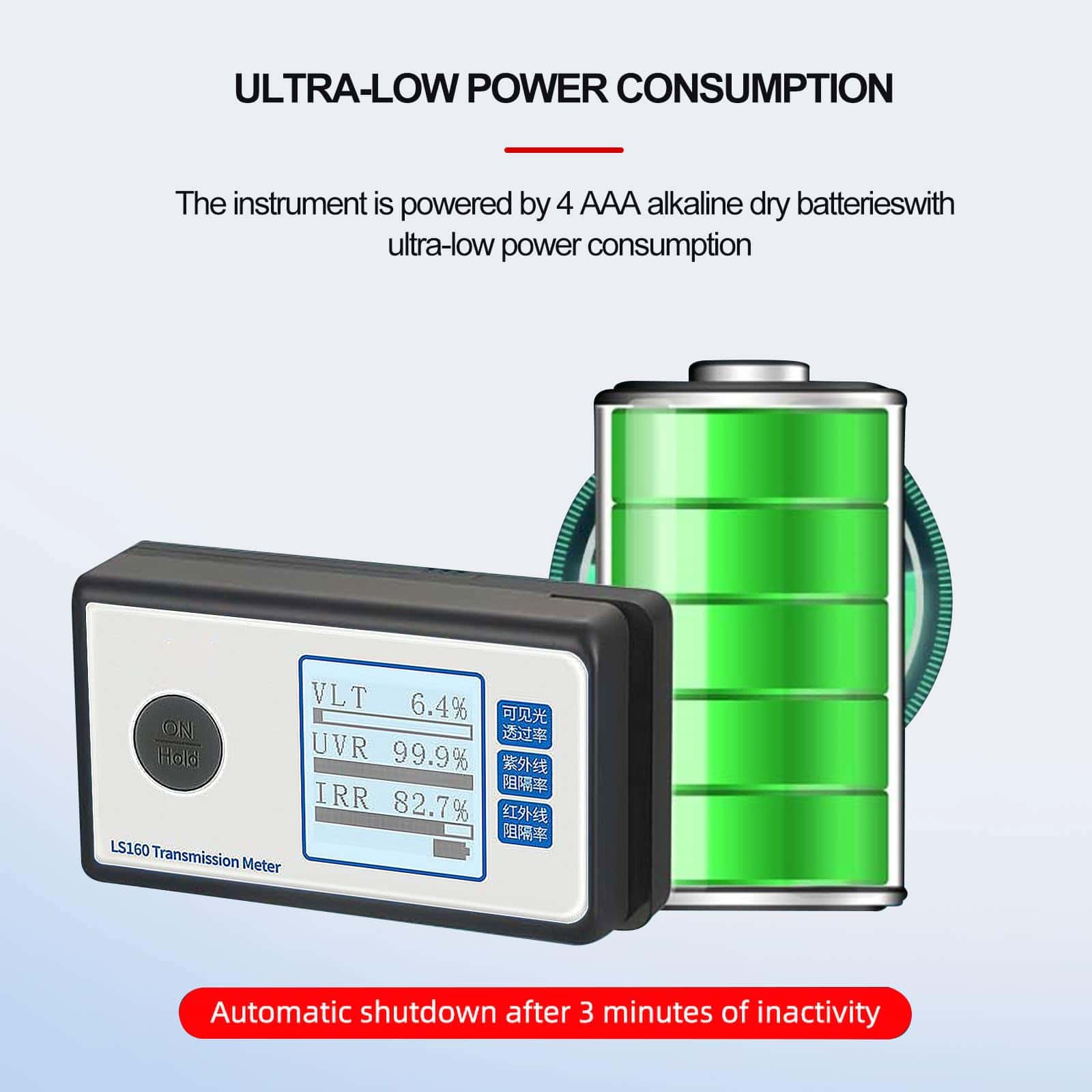 Con una batería de larga duración, este medidor le brinda la tranquilidad de que estará listo para su uso en todo momento. Ya sea que trabaje en un taller de reparación de automóviles o en una tienda de películas para ventanas, este medidor de película solar le facilitará el trabajo y aumentará la satisfacción del cliente.