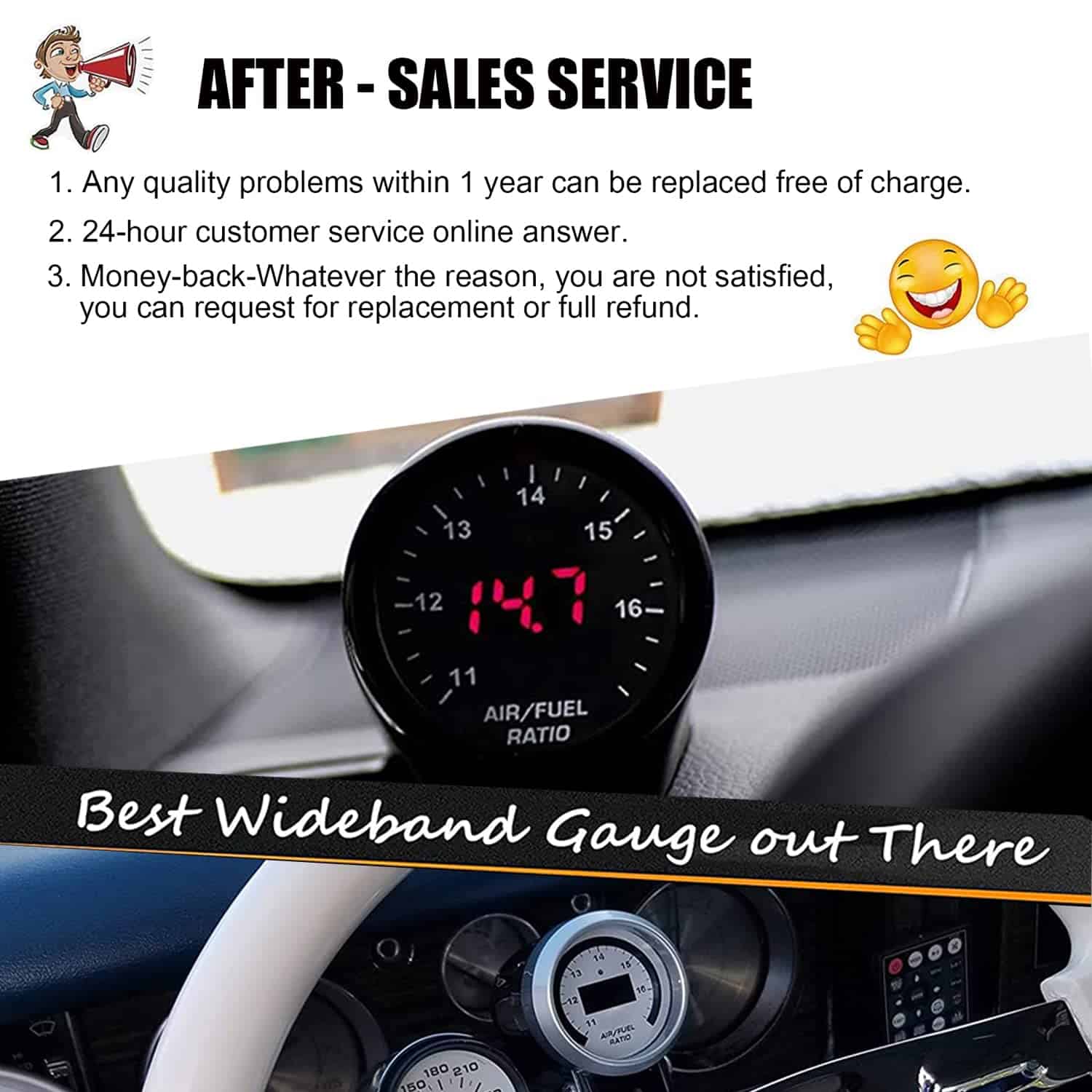 4. ALTA CALIDAD – Cada medidor de proporción aire/combustible cuenta con una salida analógica de 0-5V, compatible con registradores de datos y prácticamente cualquier sistema de gestión de motores. En uso, es altamente receptivo y preciso, gracias a un sensor UEGO alojado en su interior.
