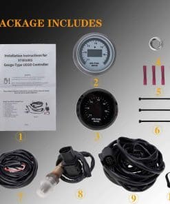 2. MEDIDOR DE PROPORCIÓN AIRE/COMBUSTIBLE – El Medidor de Proporción Aire/Combustible UEGO es un controlador de Proporción Aire/Combustible de Banda Ancha y un instrumento en uno solo. Combina precisión, velocidad y control con una pantalla digital LED fácil de leer y LED que cambian de color a medida que la Proporción A/F cambia de rica a delgada.
