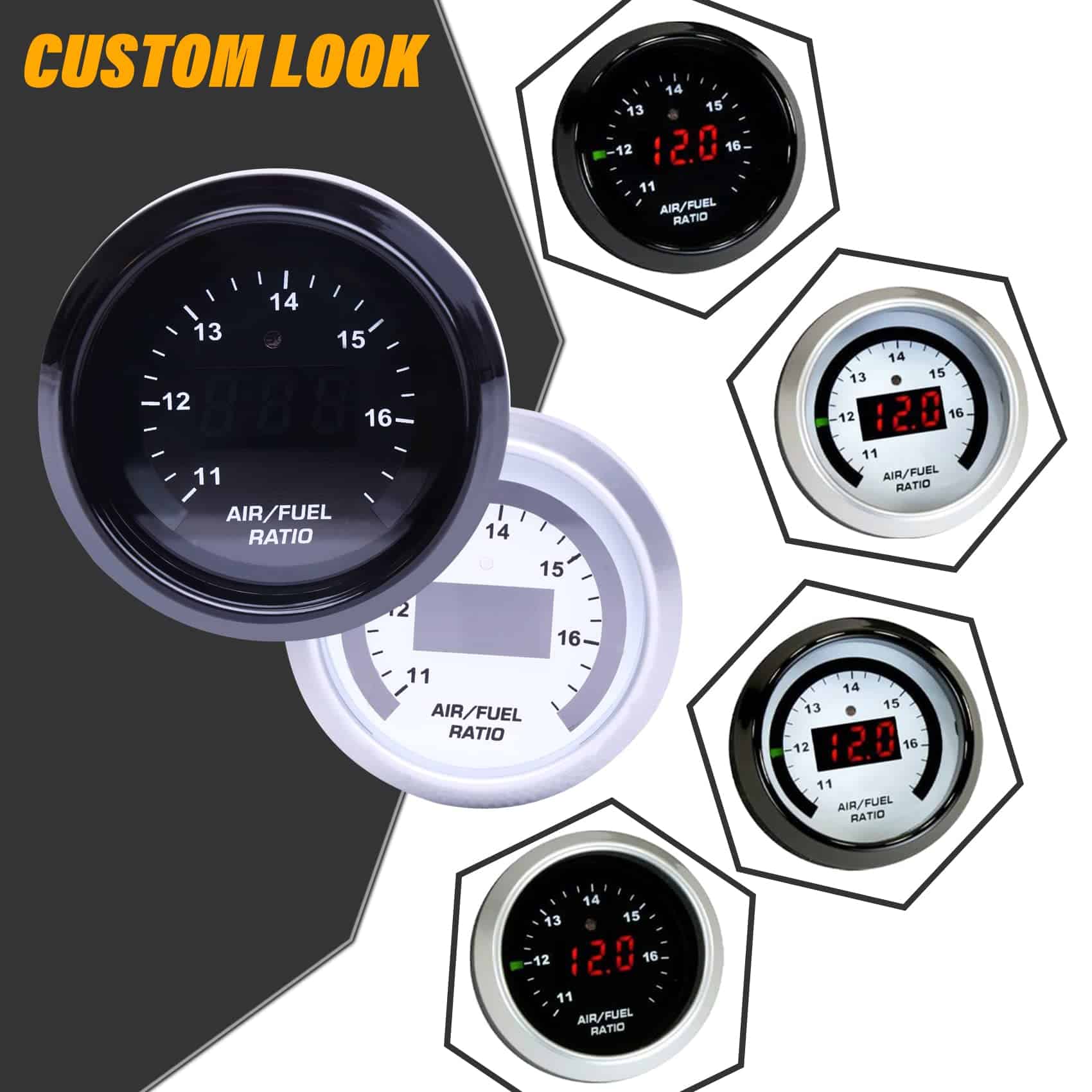 Rango de Valores AFR Según los Tipos de Combustible Display del Medidor / Salida 0-5V Valores de Gasolina de 10 a 20:1 AFR Salida 0-5V Valores de E85 de 6,6 a 13,2:1 AFR Salida 0-5V Valores de Etanol de 6,14 a 12,3:1 AFR Salida 0-5V Valores de Metanol de 4,4 a 8,8:1 AFR Display del Medidor / Salida 0-5V Valores de Lambda de 0,68 a 1,36