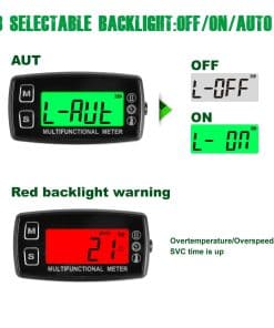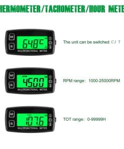 Medidor de temperatura del agua digital Yooreal, tacómetro de motor de gasolina pequeño, resistente al agua para cortacéspedes, tractores, generadores, compresores, motores fueraborda, marinos, motos de nieve. Este medidor versátil ofrece múltiples funciones para satisfacer sus necesidades de monitoreo. Con la capacidad de monitorear unidades de líquido relacionadas como aceite, agua, refrigerante, etc., y un rango de temperatura de -20 a +300 ° C / -4 a +572 ° F, este medidor es ideal para diversos equipos. Además, el contador de horas de mantenimiento, el medidor de RPM y las opciones de instalación fáciles hacen que este medidor sea una excelente adición a su equipo. Disfrute de funciones adicionales como la pantalla retroiluminada, batería reemplazable con larga duración, resistencia al agua y garantía de 2 años. ¡No se conforme con menos, elija el medidor Yooreal para sus necesidades de monitoreo de motores!