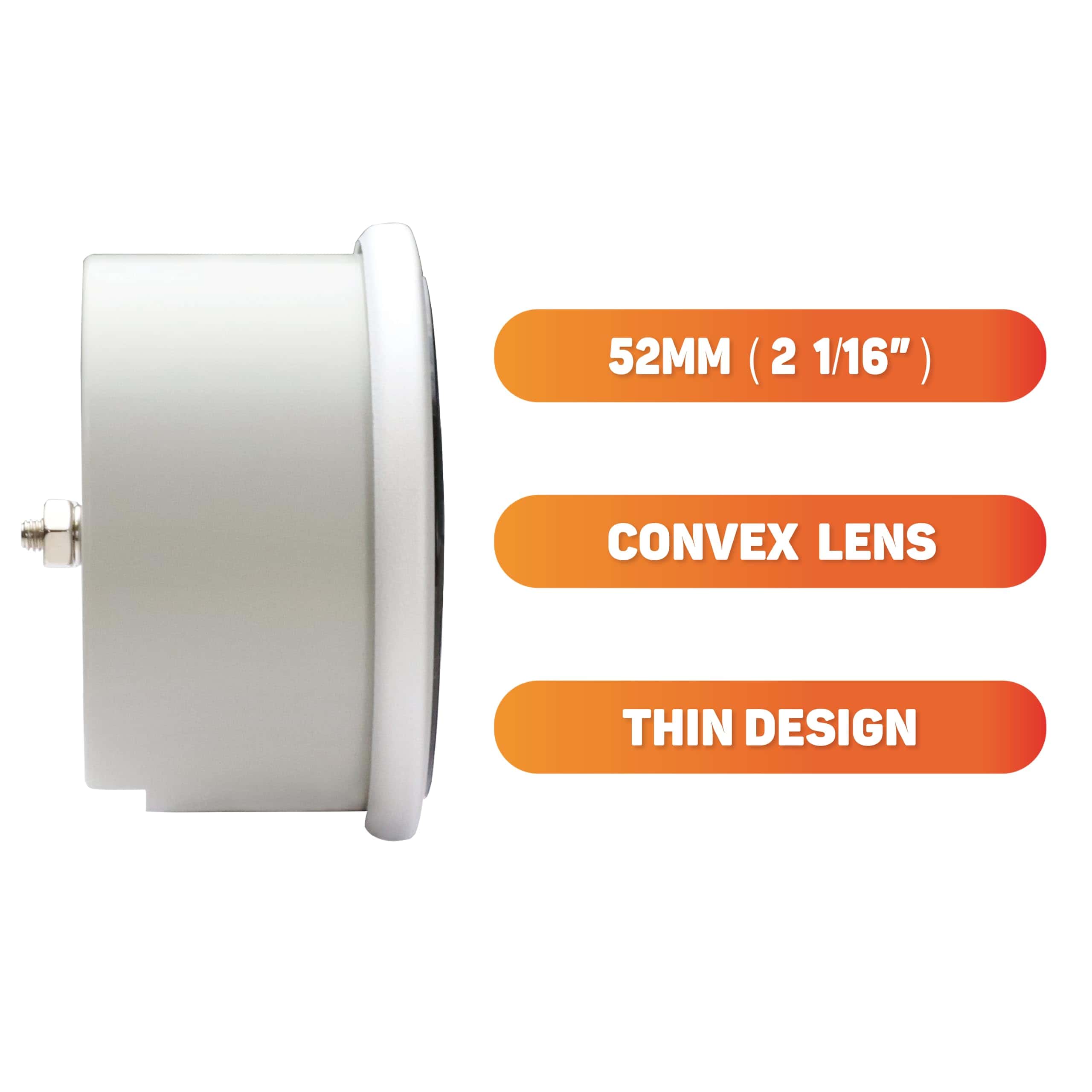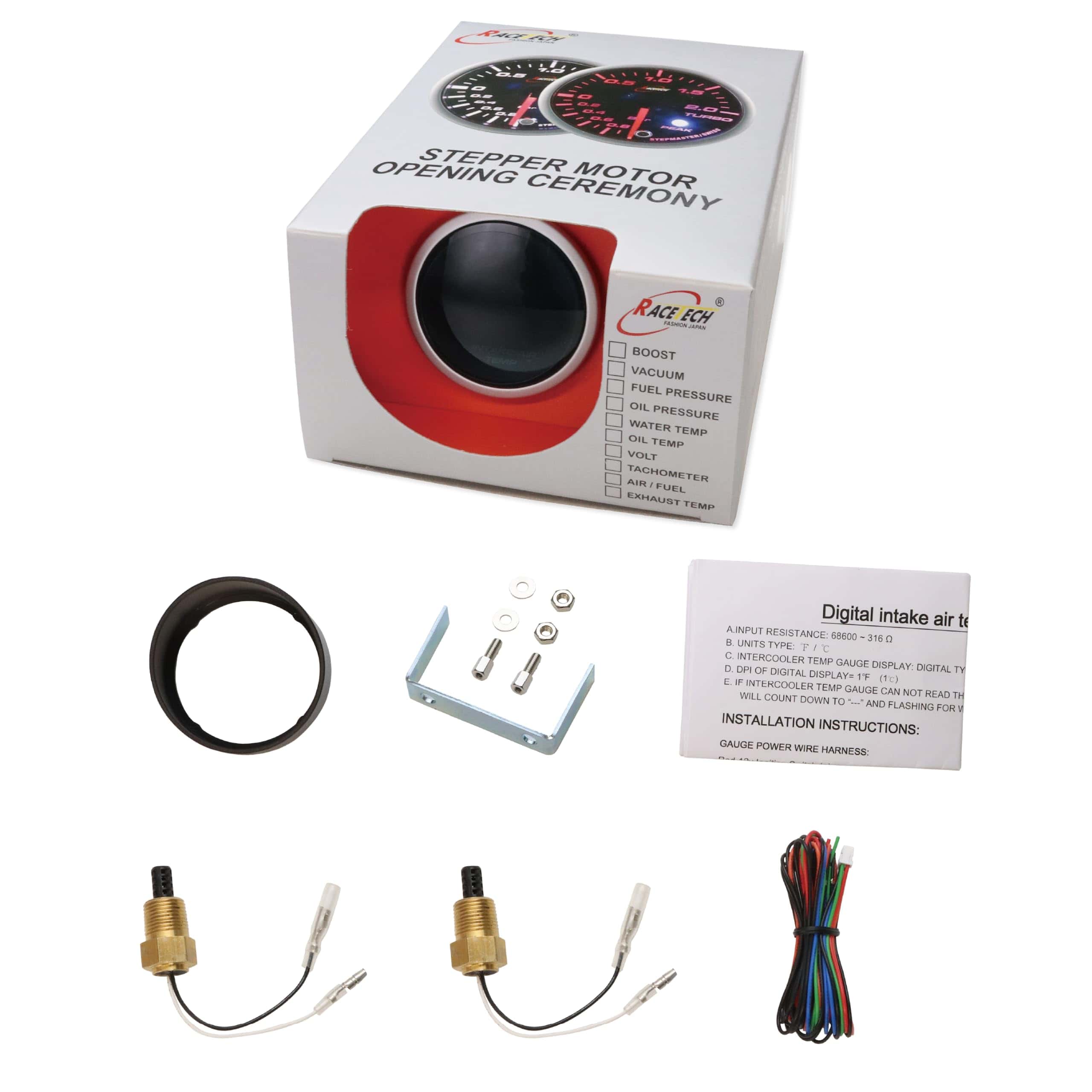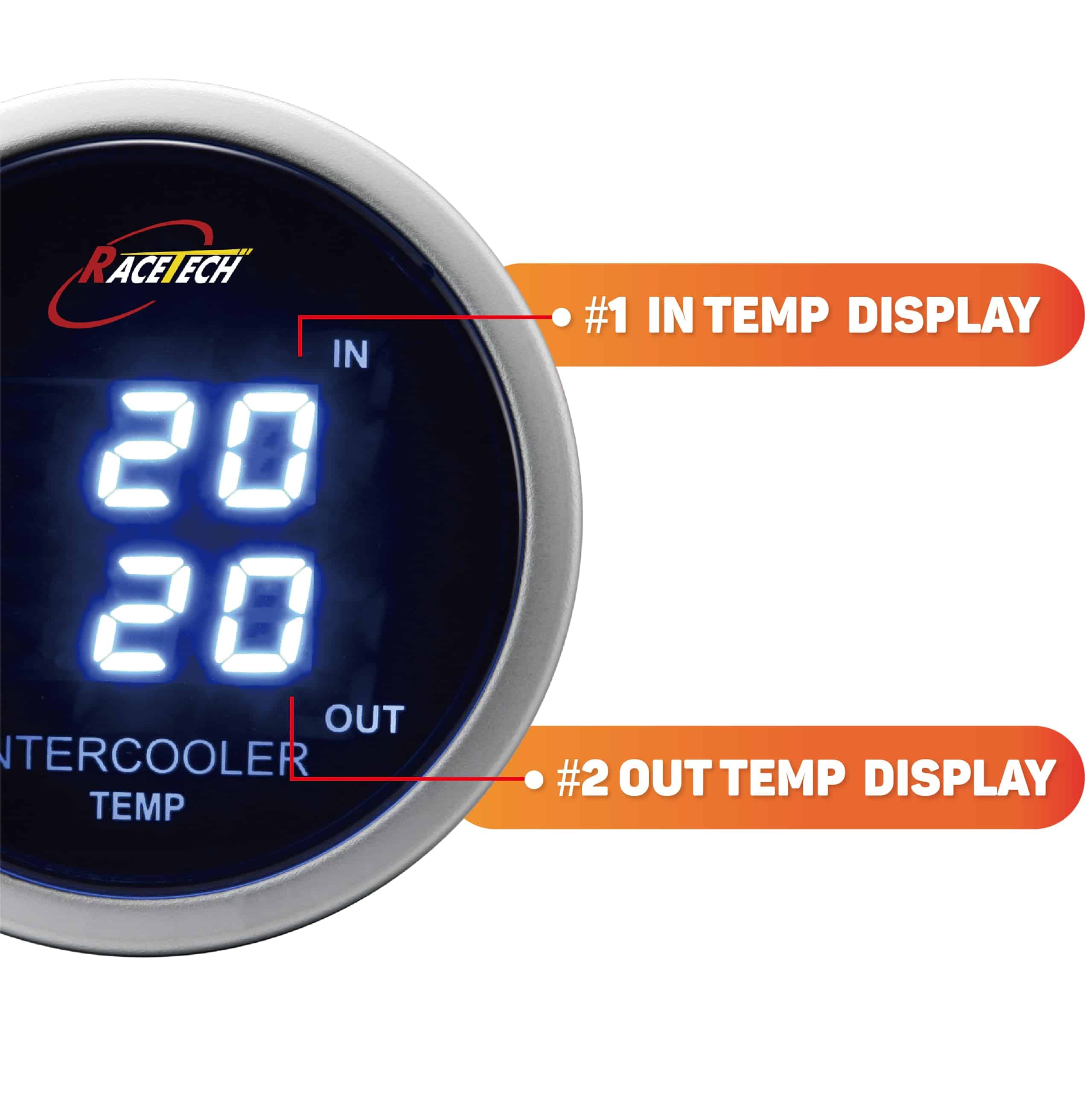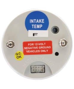 Monitoriza tanto la temperatura del aire del intercooler «IN» como «OUT» con pantalla digital dual. Este medidor de temperatura de intercooler de 52 mm (2-1/16″) con bisel de aluminio blanco y carcasa de plástico blanco tiene un rango de medición de 0 a 300 grados Fahrenheit. Requiere sistemas de 12 voltios con tierra negativa y cuenta con una pantalla LED azul de 7 segmentos. El paquete incluye el medidor de temperatura del intercooler, 2 sensores de temperatura (con rosca de 3/8″ NPT), arnés de alimentación, visera del medidor, herrajes de montaje e instrucciones de instalación. Además, este producto tiene una garantía limitada de un año por daños no causados por el ser humano y soporte técnico gratuito de por vida. Fabricado en Taiwán.
