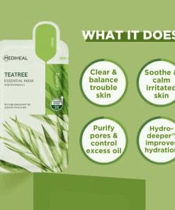 2. PROBADO PARA CALMAR LA PIEL IRRITADA Y MEJORAR EL EQUILIBRIO DE LA PIEL – formulado con 22 veces más Té de Árbol que nuestra primera generación de mascarillas, además de nuestro complejo patentado exclusivo HYDRODEEPER con factores esenciales de hidratación para ayudar a mejorar la hidratación y mantener una barrera cutánea saludable.