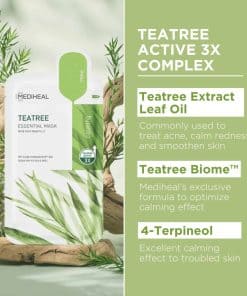 3. COMPLEJO ACTIVO DE ÁRBOL DE TÉ 3X – trata las imperfecciones en su origen para lograr una piel clara y equilibrada. El Extracto/Aceite de Árbol de Té, 4-Terpinol y nuestro exclusivo complejo calmante de Árbol de Té intensamente calman y suavizan para una piel libre de imperfecciones.