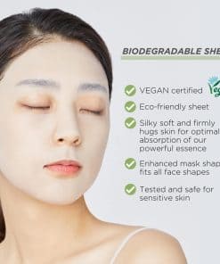 4. MASCARILLA BIODEGRADABLE – Esta mascarilla VEGANA certificada y respetuosa con el medio ambiente es suave y sedosa, y se ajusta firmemente a la piel para una absorción óptima de nuestra poderosa esencia. La forma de la mascarilla mejorada se adapta cómodamente a todas las formas de rostro. Probada y segura para la piel sensible.