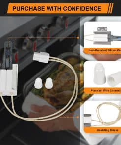 Reemplace el ignitor de su horno de gas LG con este modelo MEE61841401 de alta calidad. Hecho de cerámica y metal duradero, este ignitor ha sido sometido a estrictas inspecciones de calidad para garantizar su estabilidad, durabilidad y confiabilidad. La instalación es fácil y puede realizarse en simples pasos, incluso sin experiencia previa en instalaciones. Nota: Si el ignitor se daña durante el transporte, contáctenos para obtener un reembolso o reemplazo. Compatible con los modelos LDG, LRG, LSG, LSS, LTG de LG.